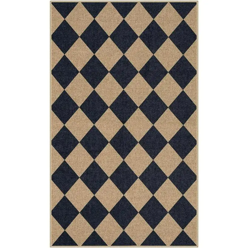 Easy Jute Rug: a of a long lasting rug in the look of natural jute with our Easy Jute rugs.(Not actually made from jute) Made of safe that not easy to crack, without scratching, shedding, or fraying with timeNote: Printed color and pattern in easy jute, color charcoal black/grey, not pure black.Our rug comes in a package, which may be some creases at the beginning.Unroll it or place heavy books on them for a few days to hold down.Checkered Rug: Showcasing checkerboard in black and natural colors, purposely distressed and faded checkerboard design, it makes a great option for anchoring farmhouse aestheticsFunctional Rug: Checkered 3'x5' (35. 83x59.. 84 Inch) rug lends a of simplicity and to your, hallway, entryway, kitchen, bedroom, camping, laundry room, RV, front door, dining room, sunroom, deck, courtyard, or more indoor/rooms, creating a warm appearanceNon and Safe Rug: Designed with backing that assistance, helpful to keep the carpet griping the kitchen floor, thus enhancing safety.Safe enough for children and pets to at home (Place on a clean and dry floor recommended.)Easy to Clean: Use hose, or vacuum cleaner to clean dust, dirt or debris regularly.Also, can being wash in cold water on a gentle cycle, and recommend to air dry after using the washing machine.Washable fibers let those who love the natural look of jute enjoy cleanLow Pile and Non Shedding Thin Rug: Without pile or fluffy, sleek surface great for high traffic areas and not obstruct doorways