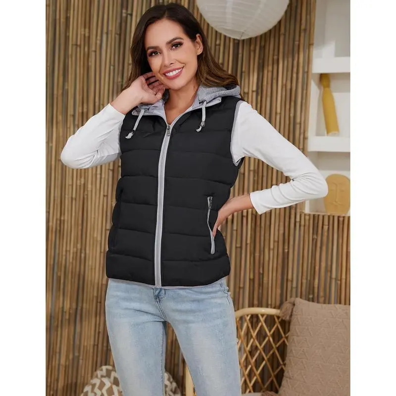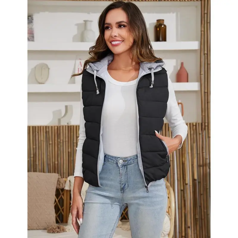 Women's Puffer Vest Zip Up Quilted Padded Winter Sleeveless Hooded Gilet Warm Jacket Outerwear