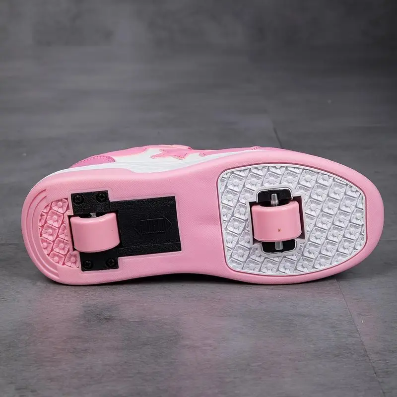 [Pink Roller Sneakers] Pink Skate Sneakers | Girls' With Rotating Buckle Closure, Detachable Wheels, All-Season Comfort For Training & Sports