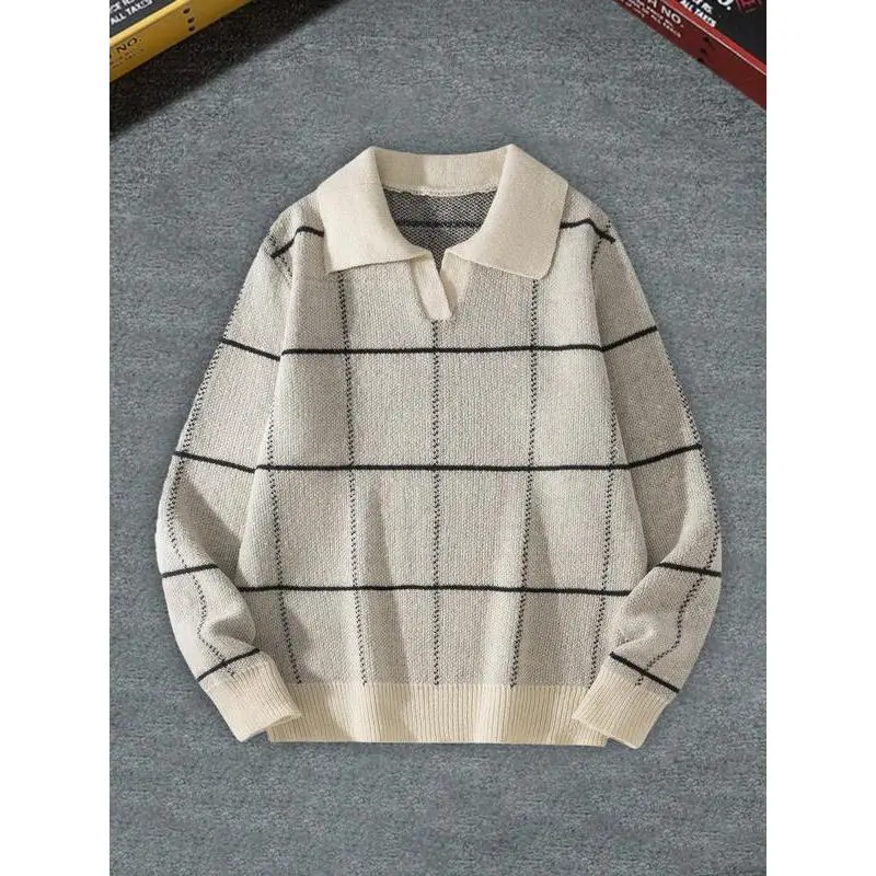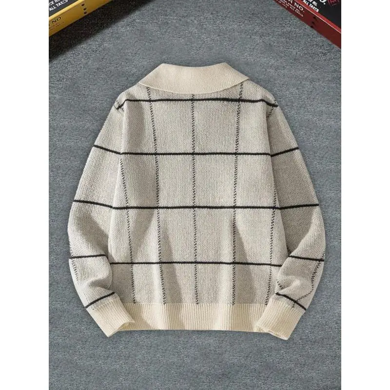 Elevate Your Style with This Men's Sweater! 🎨 ✨ This men's sweater boasts a stylish checkered pattern, ideal for casual outings. The long sleeves and lapel design add a sophisticated touch. The V-neck cut enhances its modern appeal. Perfect for trendy knitted pullovers, this sweater is a versatile wardrobe addition. It's a go-to choice for everyday wear, standing out in any setting. Comfort Meets Style: This sweater combines comfort with style, making it a perfect choice for casual days. Its design ensures you stay fashionable while feeling comfortable. Enjoy the convenience of a trendy knitwear piece that fits seamlessly into your daily outfits.