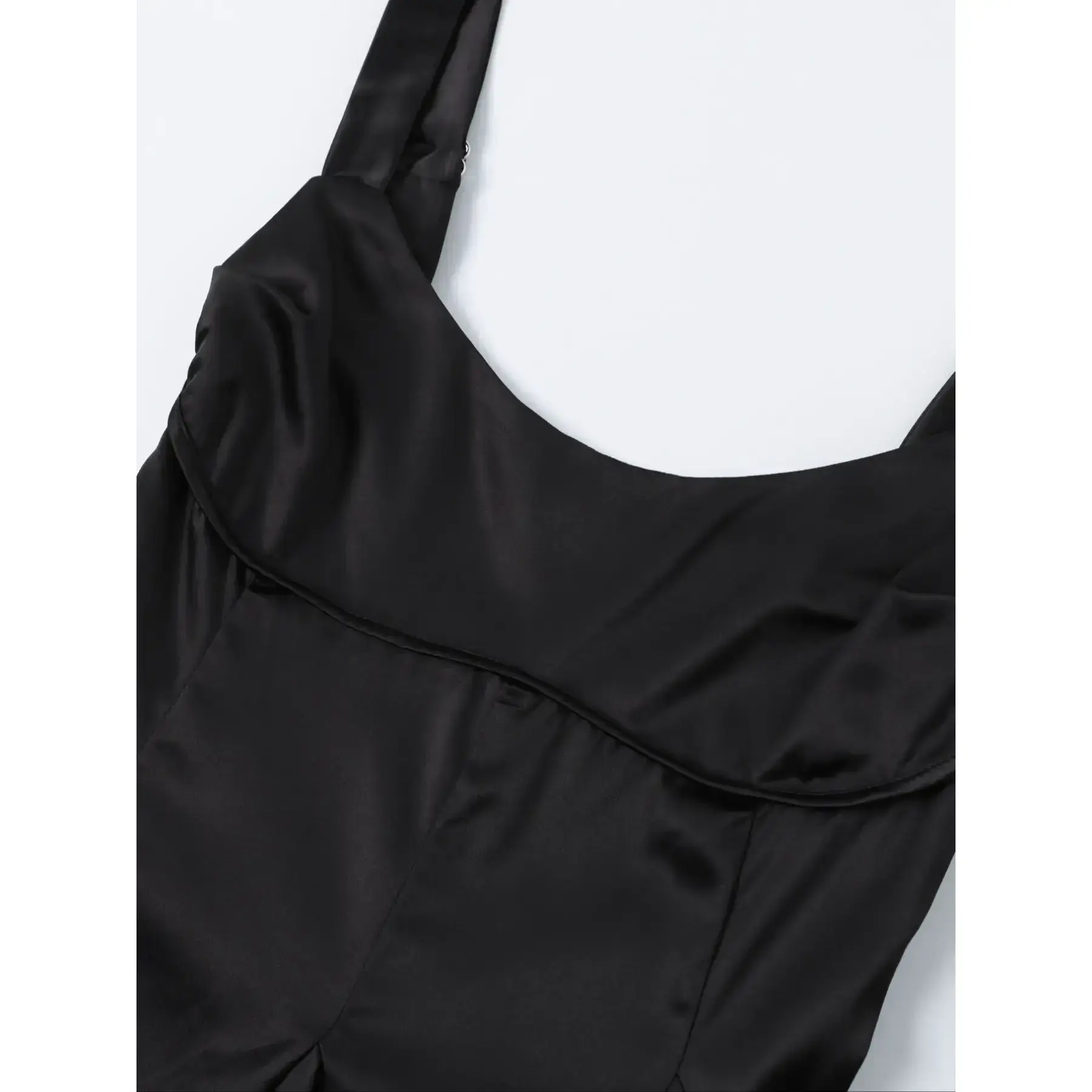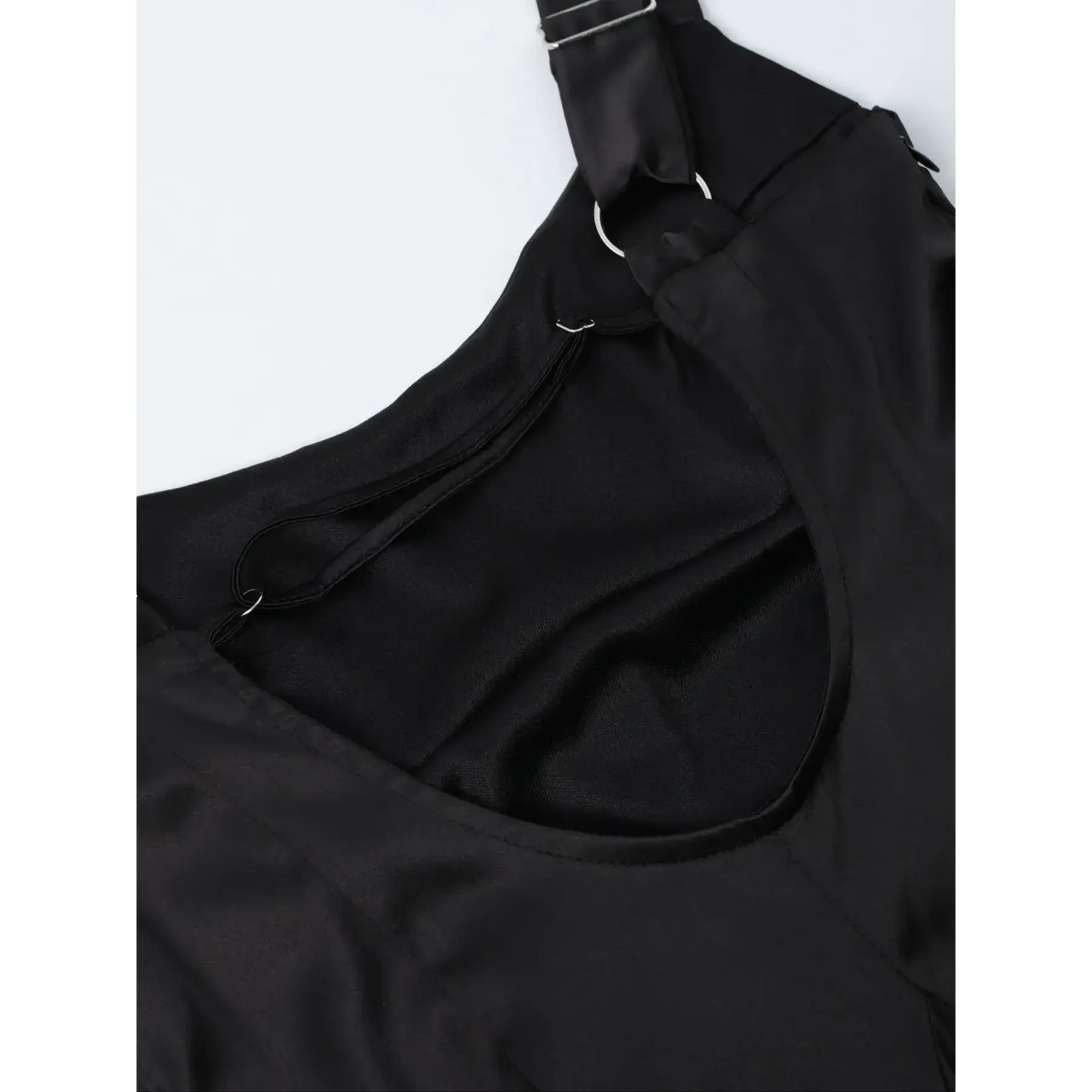 Parthea Square Neck Backless Hollow Satin Ruched Cami Dress,A must-have for Parties, Gatherings, Everyday Fashion and Comfort