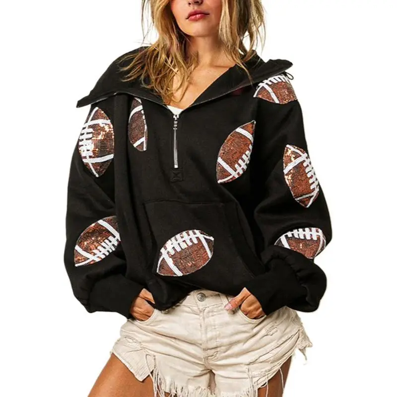 [Sequin Football Prints]: Featuring fun sequin football prints, it??s a total standout for game days.The sparkly details add a playful, sporty touch.