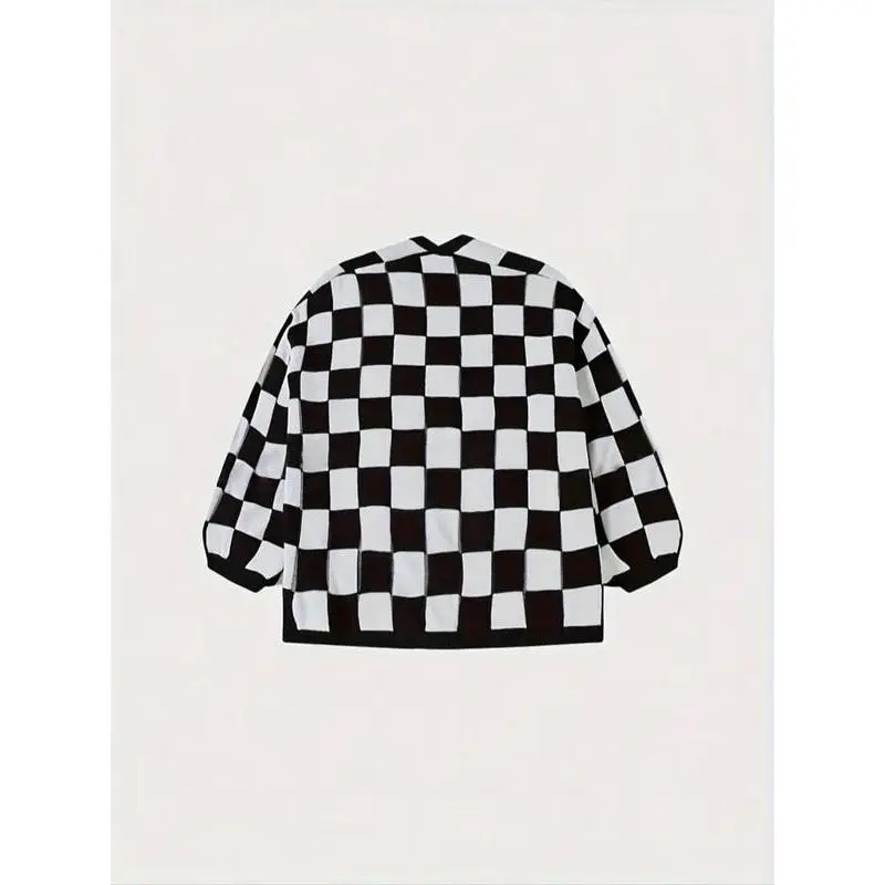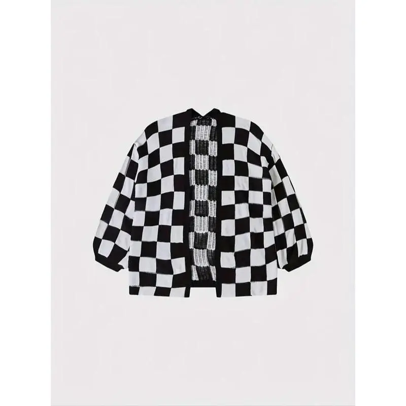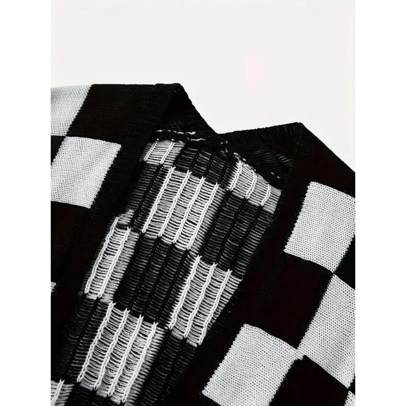 ��Plus Size�� Plaid Print Drop Shoulder Sweater Cardigan, Casual Long Sleeve Open Front Knitwear for Spring & Fall, Women's Plus Clothing for Daily Wear