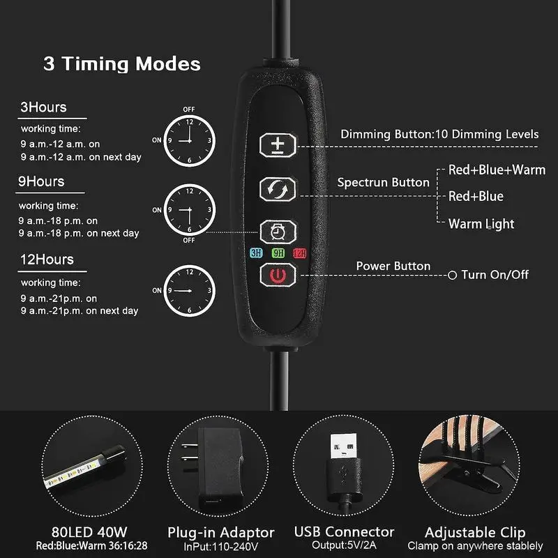 #ShopWith[CommerceLite]Indoor Plants Grow Light - Upgraded 80 LED Lamps with Full Spectrum & Red Blue Spectrum, 3/9/12H Timer, 10 Dimmable Level, 3 Switch Modes