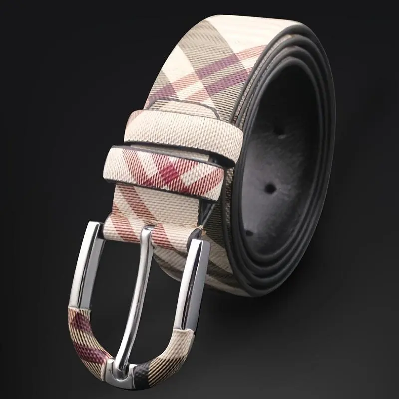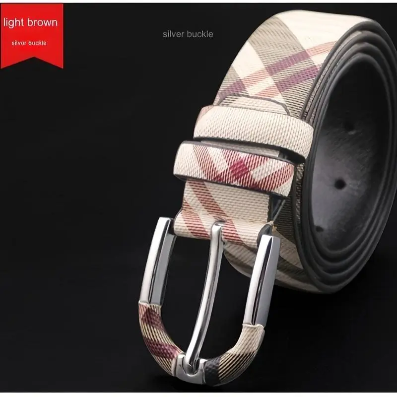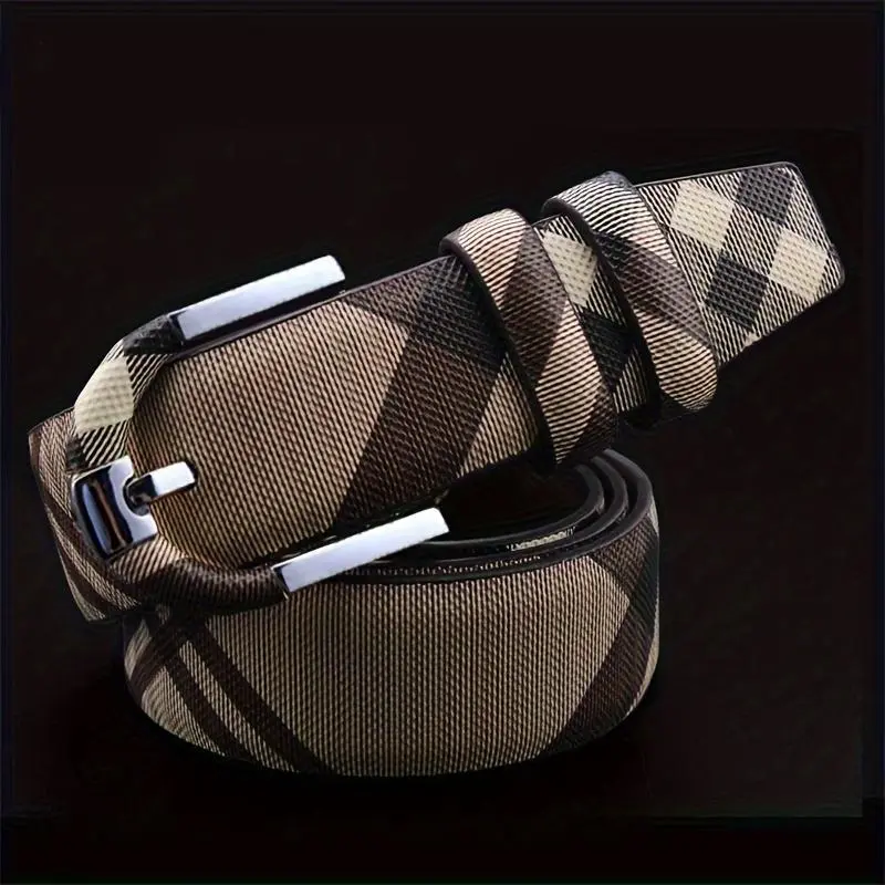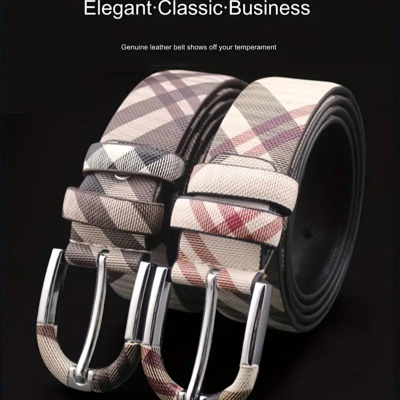 A Men's Genuine Leather Belt With A Needlepoint Grid Pattern Buckle, Made Of Top Layer Cowhide, A Perfect Gift For Casual And Versatile Daily Wear.