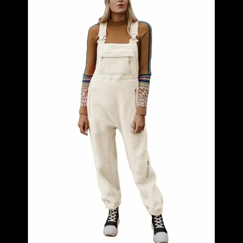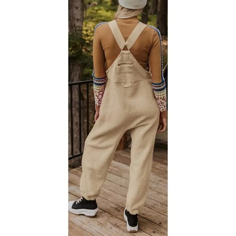 Women's Fleece Warm Overalls Winter Loose Casual Jumpsuits with Pocket