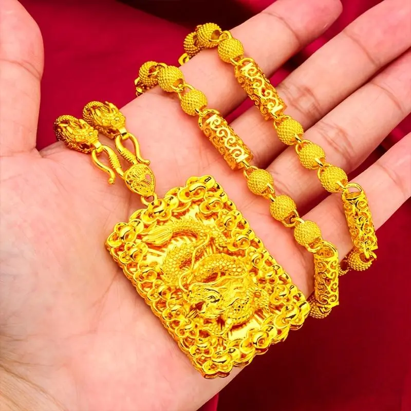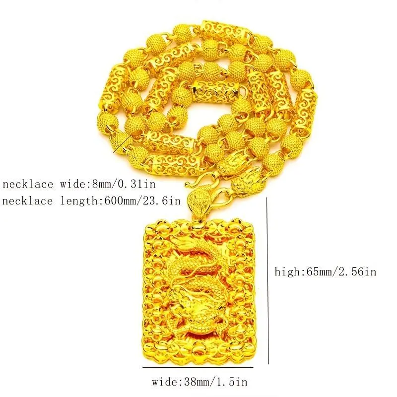 Popular & premium the choice of the elite Cool And Handsome Golden 24K Gold Plated Copper Pendant Necklace, Dragon Pendant, for Men, Father'S Day, Christmas, Valentine'S Day Gift, for Father, Husband, Son