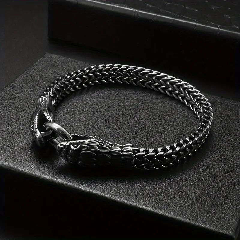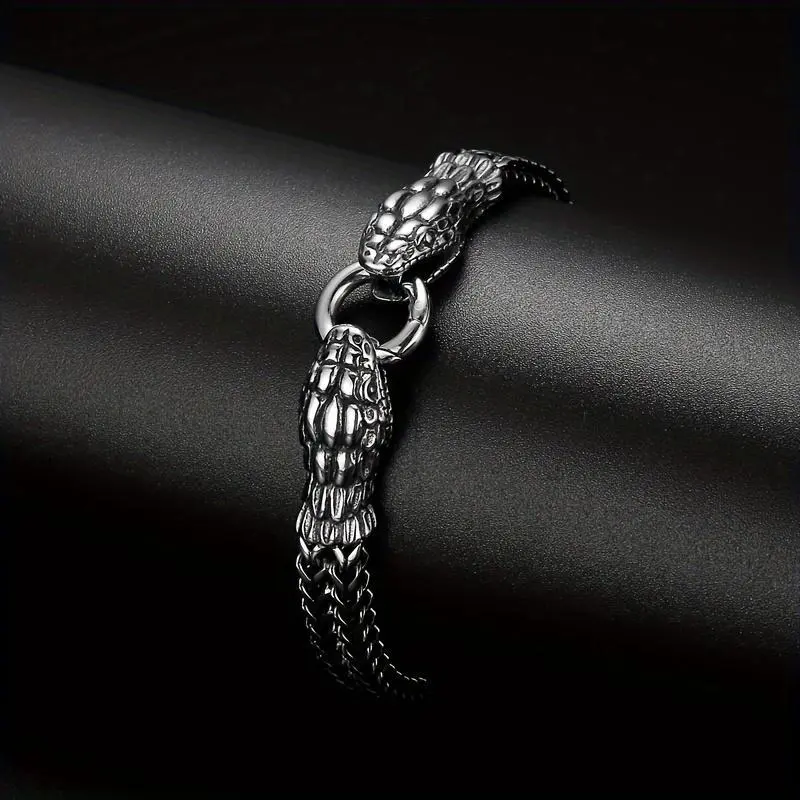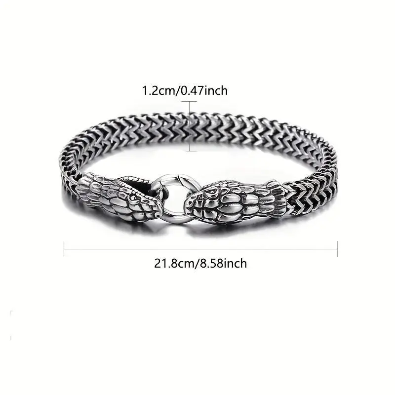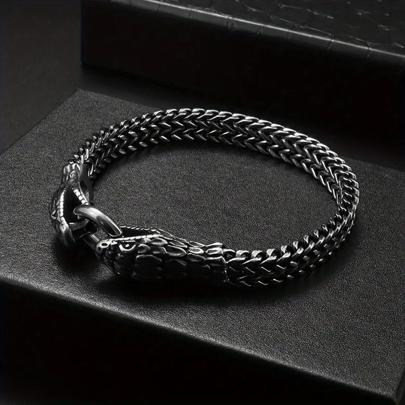 Titanium Steel Double-Layer Snake Head Bracelet, Antique Silvery Plated, Simple and Cool Style, No Magnetic, for Europe and America Cross Border Trend