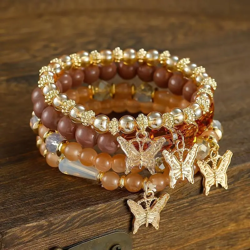4 Pieces Bohemian Chic Butterfly-Shaped Multi-Layer Beaded Link Bracelet Elevate your accessory game with this exquisite bracelet set, designed exclusively for creative women. This set includes four pieces, making it a versatile addition to your jewelry collection. This bracelet set is not just a fashion accessory; it's a statement piece that reflects your unique style. Whether you're dressing up for a special occasion or adding a touch of elegance to your everyday look, this bracelet is the perfect choice.
