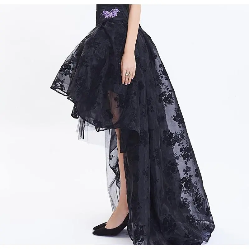 Steampunk Costume Victorian Skirt Corset Dress for Girls Plus Size Wedding Dressing Ruffle High Low Outfits Womenswear Black 7020-D1