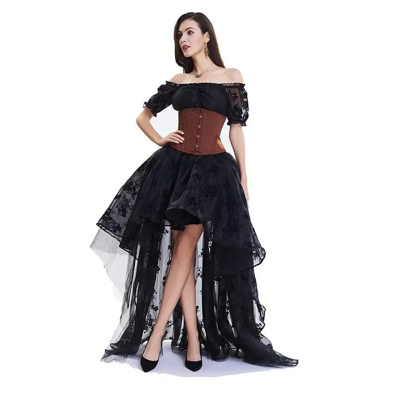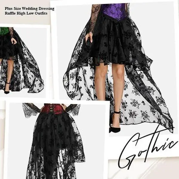 Steampunk Victorian Skirt Corset Dress ? Elegant Victorian Look ? This unique skirt corset dress is perfect for girls seeking a Victorian-inspired look. It features a ruffle high-low design, adding elegance and flair. The black color enhances its steampunk aesthetic. Ideal for plus-size wedding dressing, this outfit combines comfort with style. Code: 7020-D1. This outfit is designed for women who love Victorian and steampunk styles. The ruffle high-low design ensures a flattering fit. Perfect for adding a unique touch to your wardrobe. Tips??Being a light color, white works best when combined with complementary products like cors??s light hue suggests pairing with foundation garments