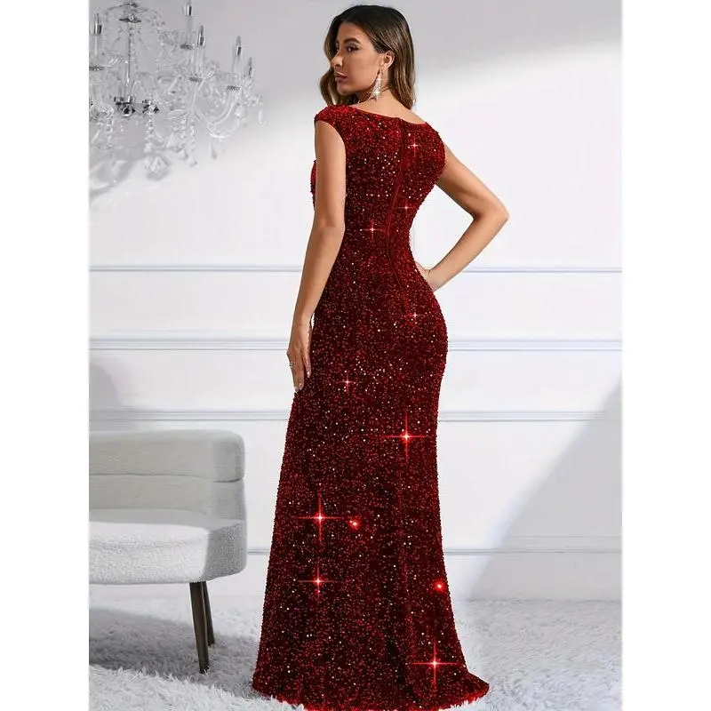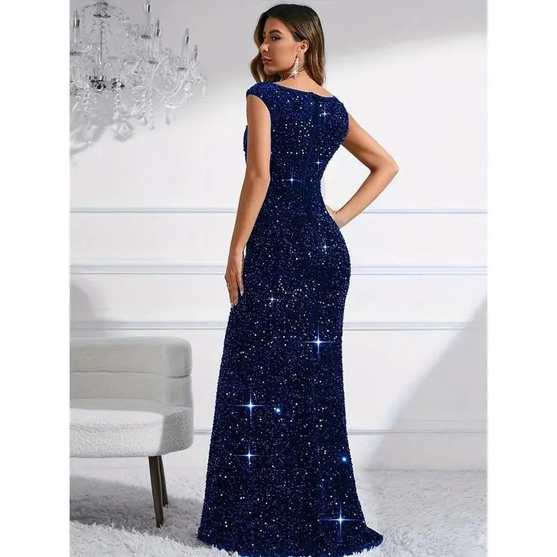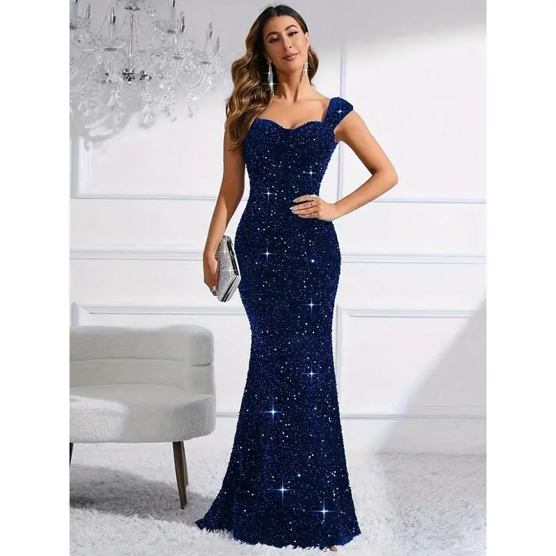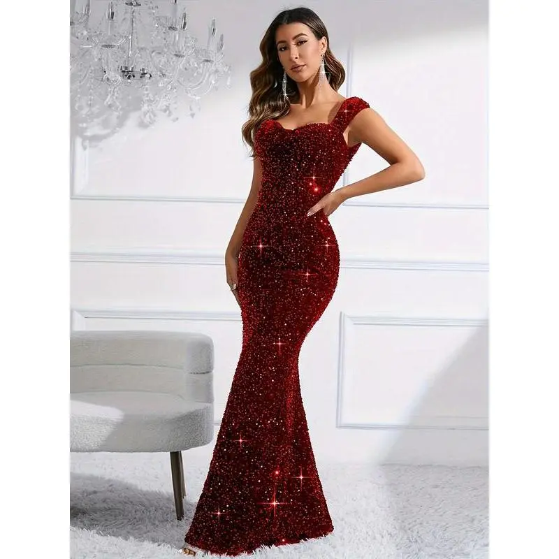 Women's Glitter Fish Tail Design Evening Dress, Elegant Sweetheart Neck Sleeveless Evening Party Gown, Ladies Clothes for Cocktail Prom