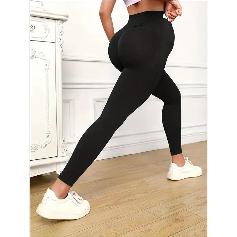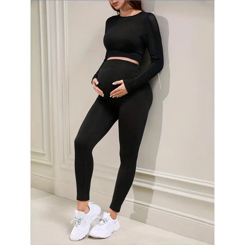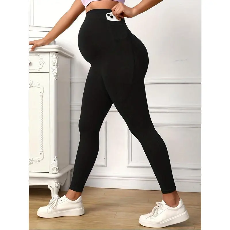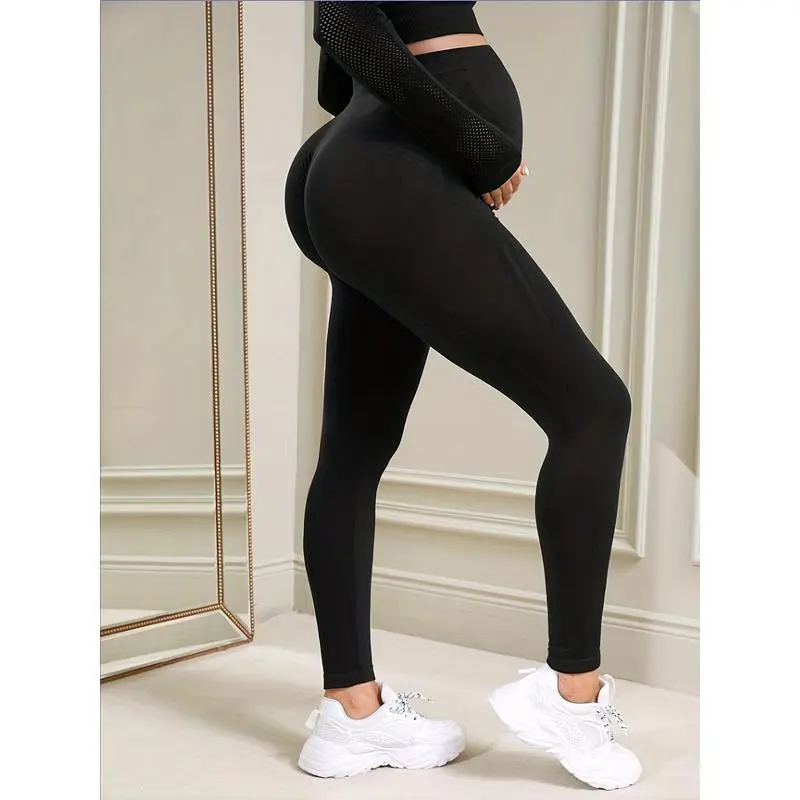 Comfy & Stretchy High Waist Solid Tummy Support Maternity Sports Yoga Pants Pregnant Women's High Stretch Base Layer Leggings