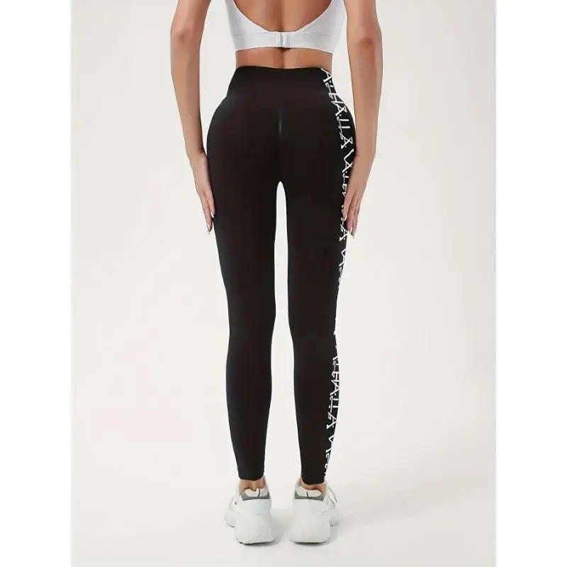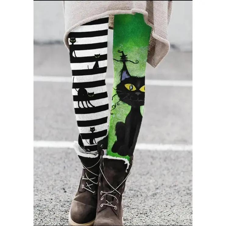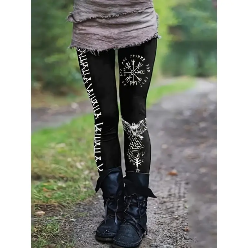 High Waist Graphic Print Viking Style Gothic Style Leggings, Casual Skinny Stretchy Tights for Daily Wear, Women's Clothing Fabric Womenswear Black Biker Bottom Polyester