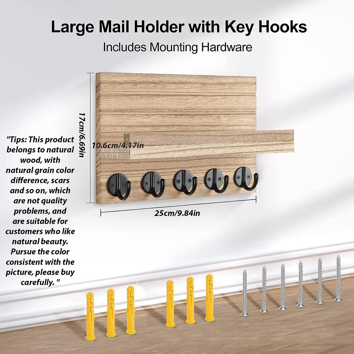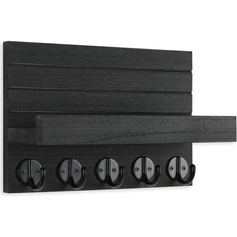 Key Holder for Wall, Decorative Key and Mail Holder with Shelf Has Large Hooks for Bags, Coats, Umbrella – Paulownia Wood Key Hanger with Mounting Hardware