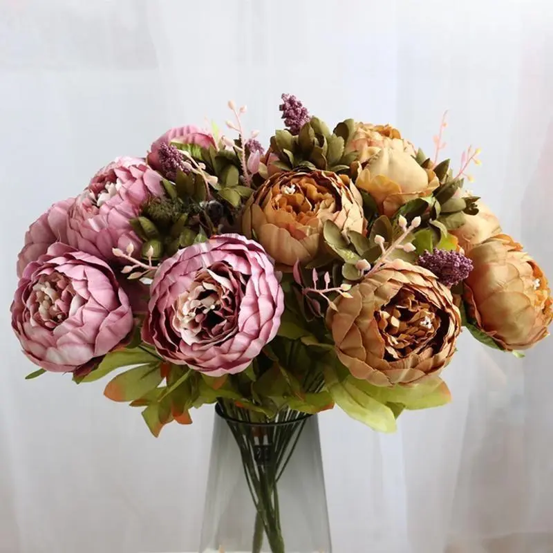 Artificial Peony Bouquet, 1 Bouquet Faux Peony Flower Bouquet, Decorative Flowers for Home Party Wedding, Home Decor Supplies, Fruit