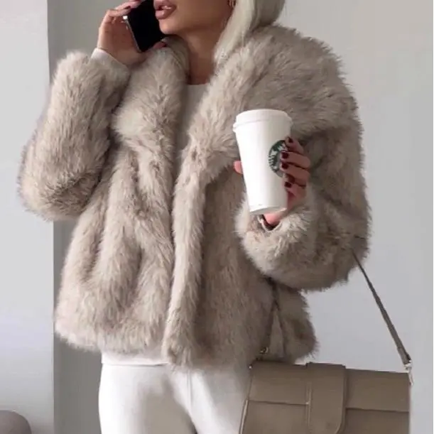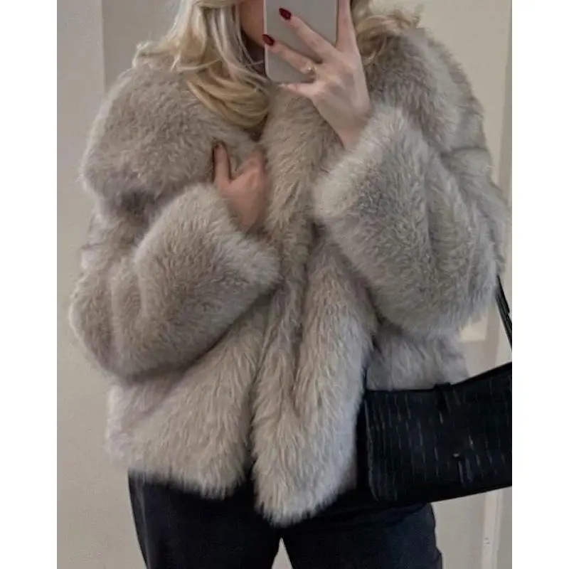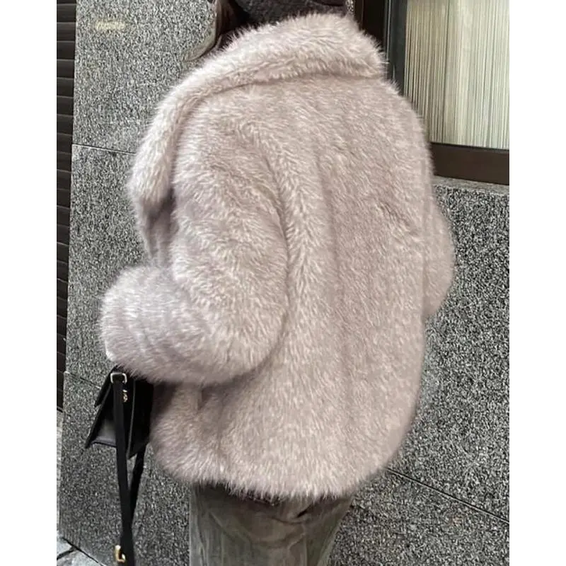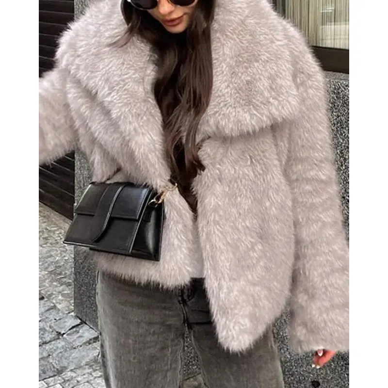 ChicMe Turn-down Collar Long Sleeve Faux Fur Coat Jacket Casual Warm Fluffy Cropped Coat