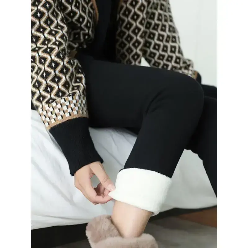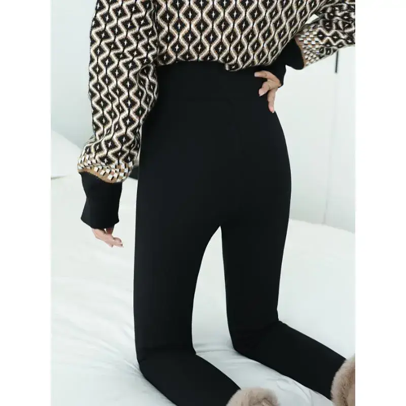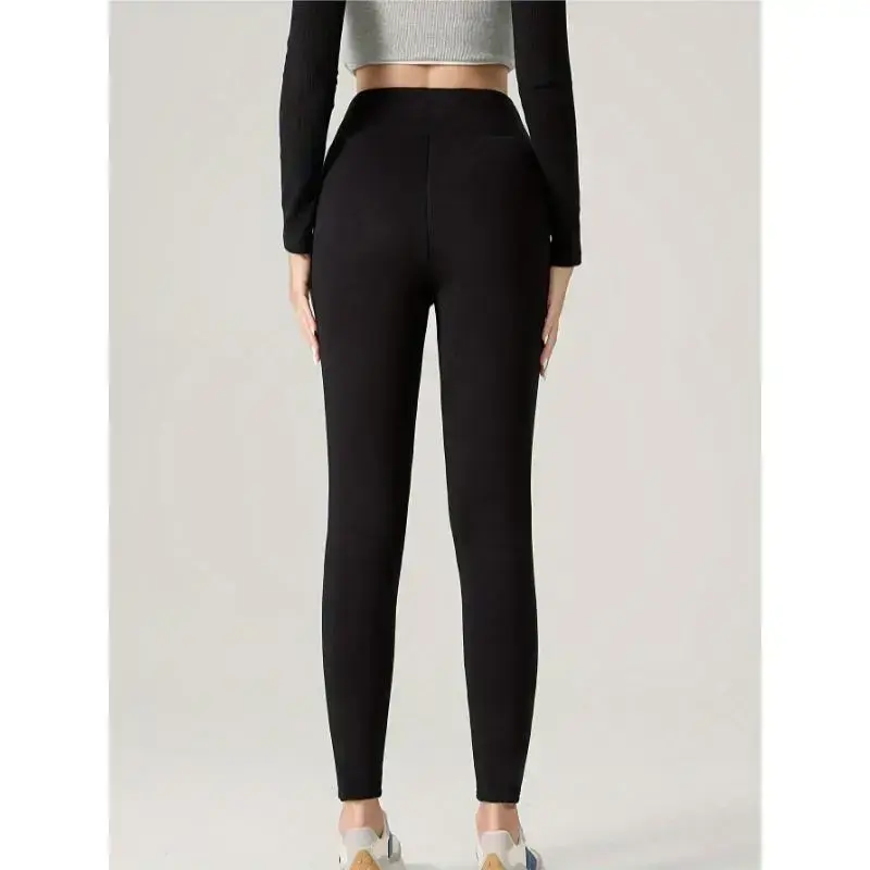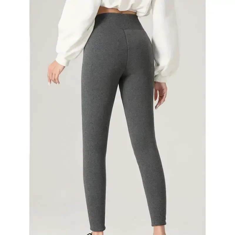 Women'S Winter Warmth Plus Size Fleece-Lined Pants, 95% Rayon 5% Polyester Knit Fabric, Solid Color with Pockets, Solid Color Jegging Trousers for Outdoor and Home Use Minimalist Short Basic Comfort Womenswear