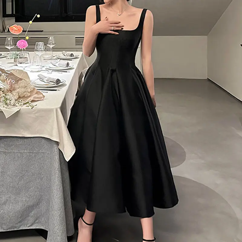 French light wedding dress pure color satin simple petite host adult ceremony party banquet evening dress can be worn at ordinary times Bridal Outfit White Minimalist Sleeveless Women Womenswear Basic