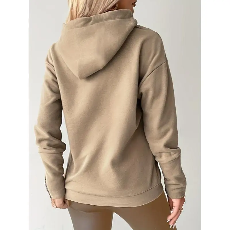 PrettyGarden Women's Casual Long Sleeve Lapel Zipper Sweatshirt Drawstring Loose Pullover Tops Fall Sweater-Womenswear Cotton Fabric