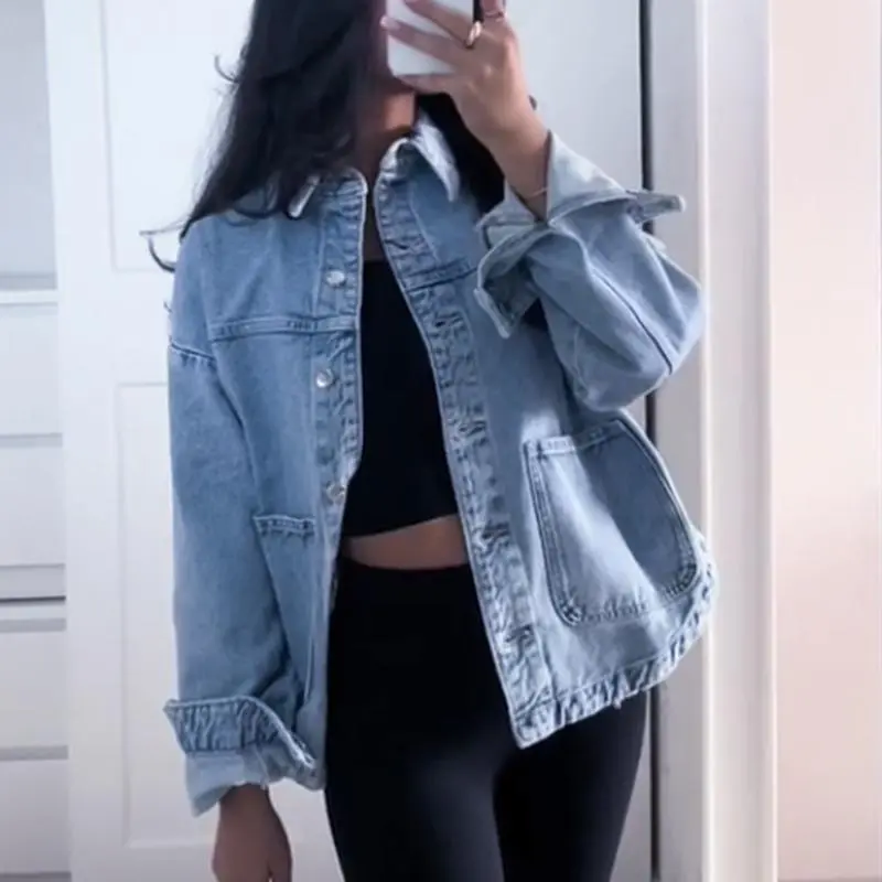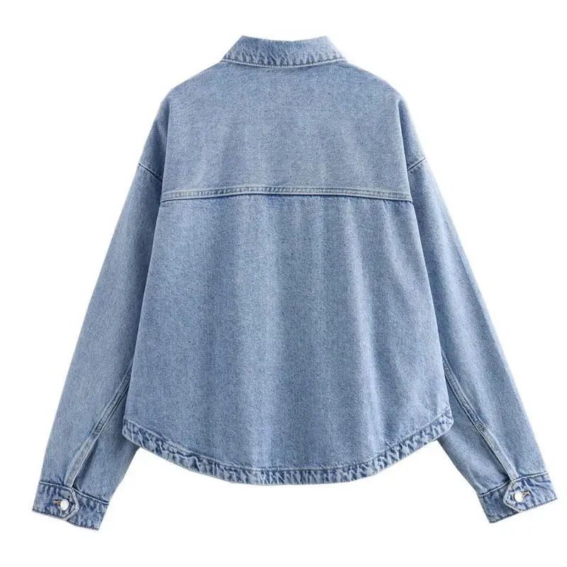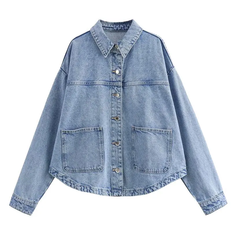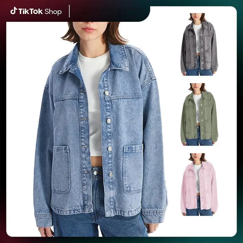 Women Jean Jackets Oversized Long Sleeve Coat Fashion Clothes Trendy Button Up Denim Shirt Jacket with Pockets