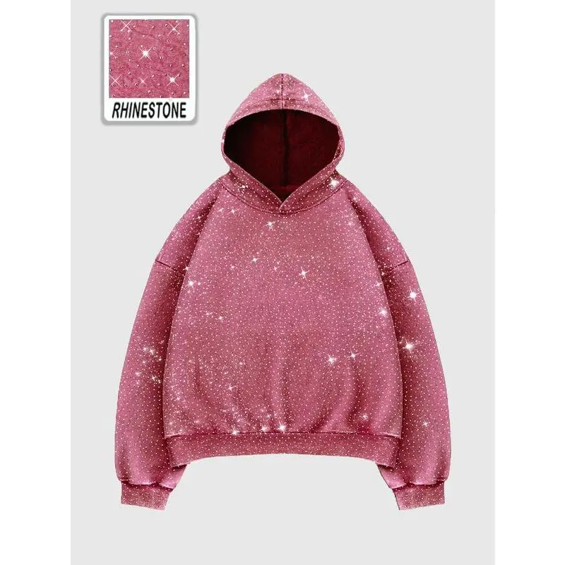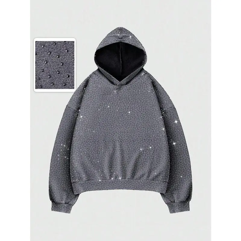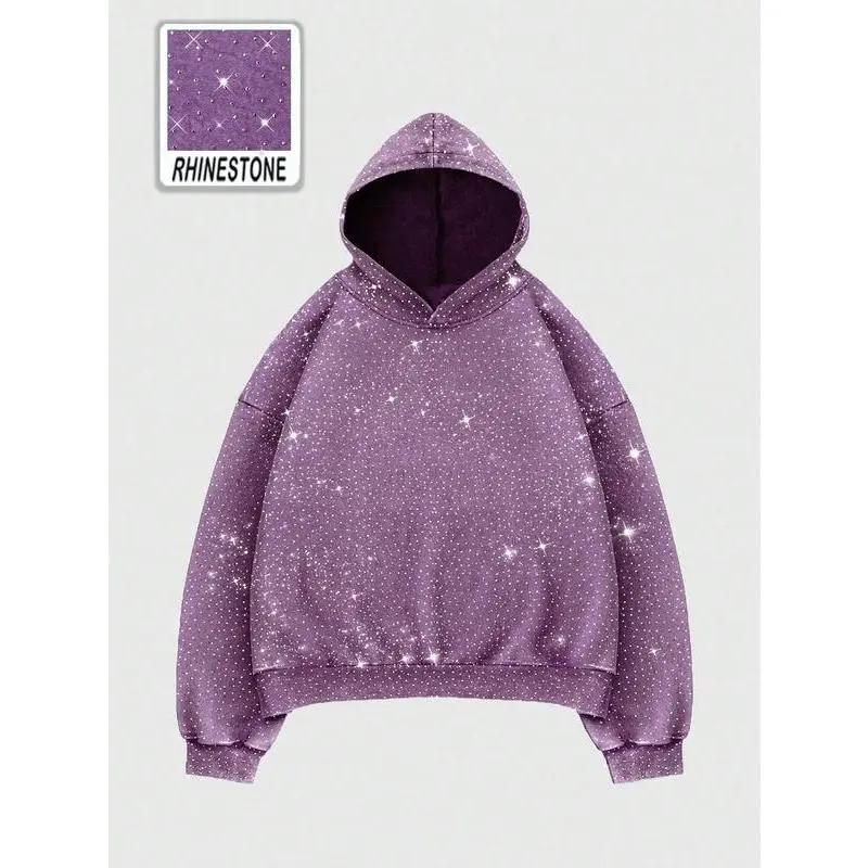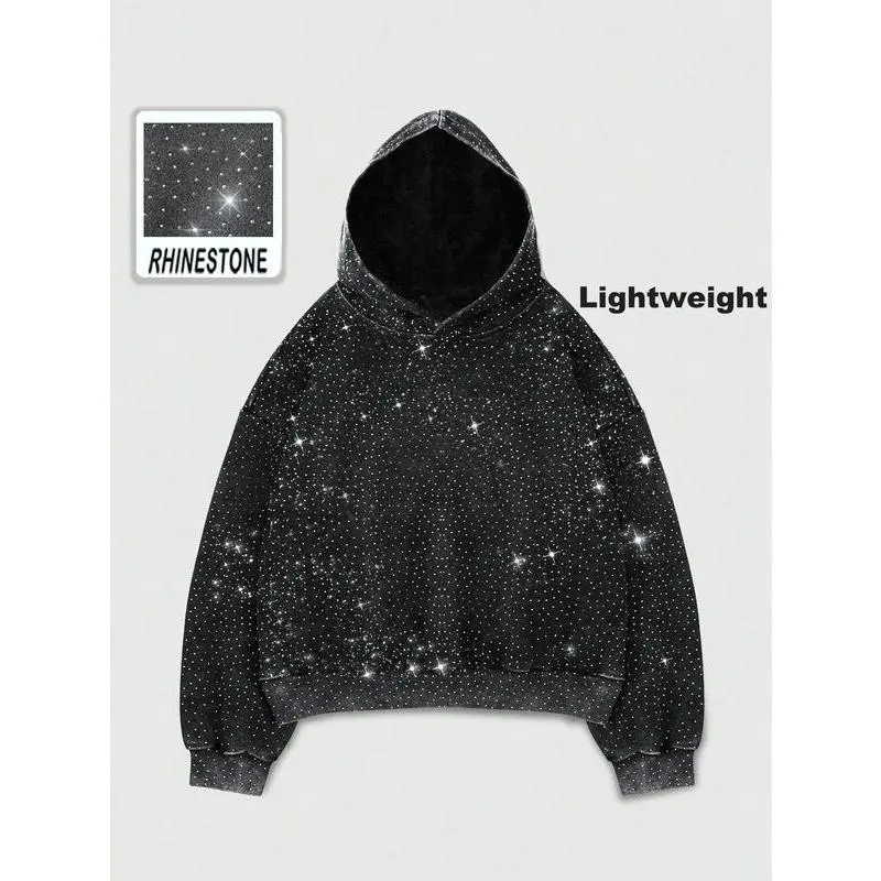 Feature: Mens hoodies, drop shoulder, long sleeve, rhinestone, bringing a fashionable edge to your everyday wear