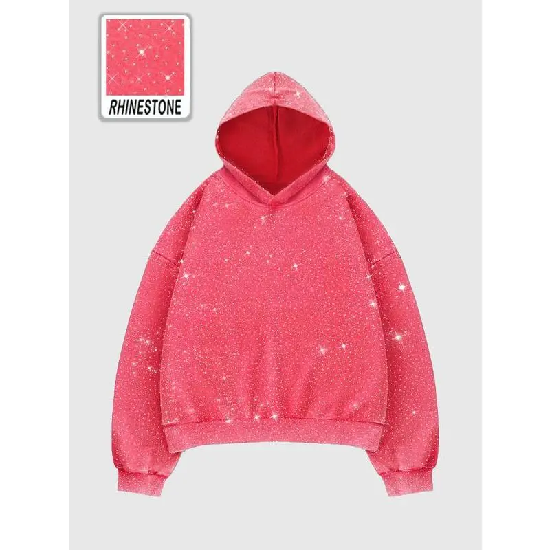Rhinestone Glitter Christmas Oversized Hoodies Sparkly Long Sleeve Shirts Party Hooded Sweatshirts Tops