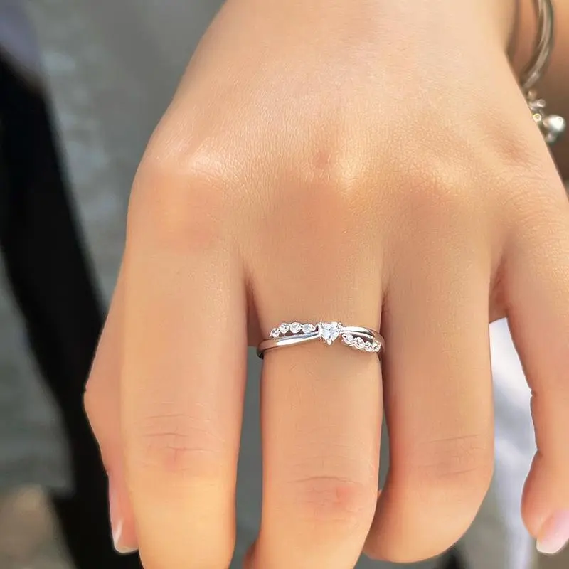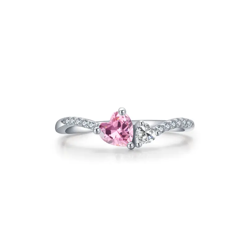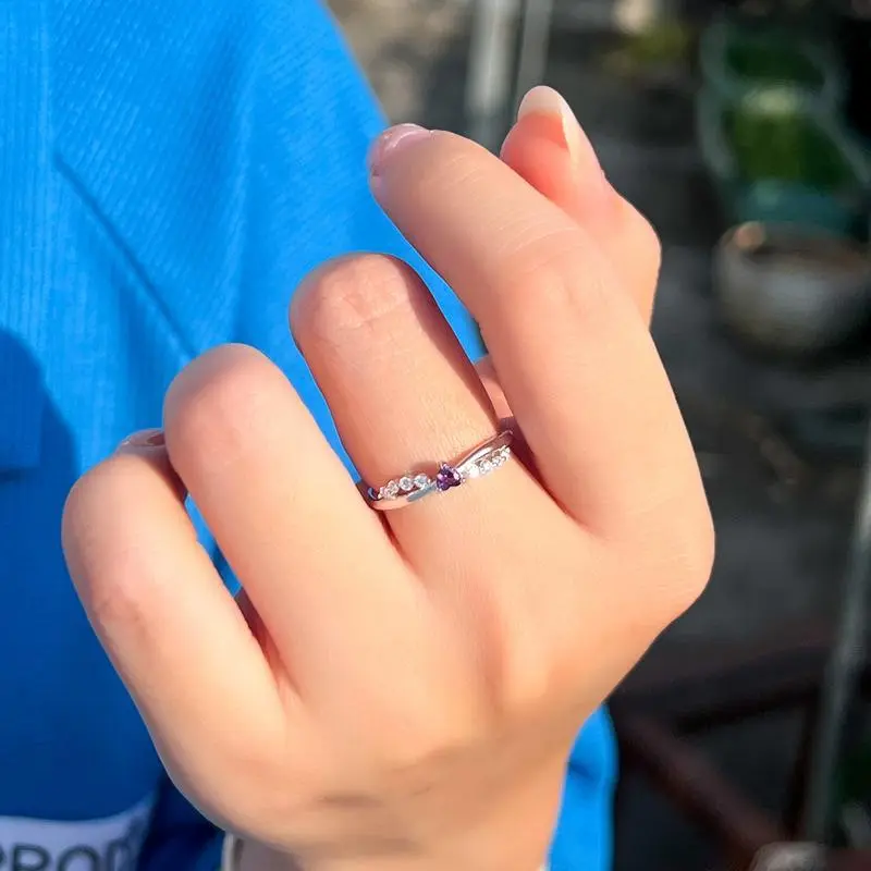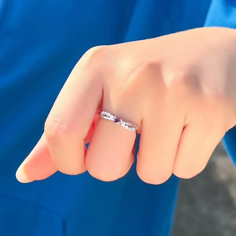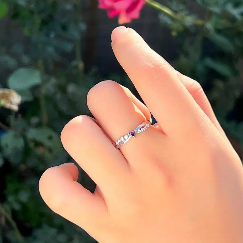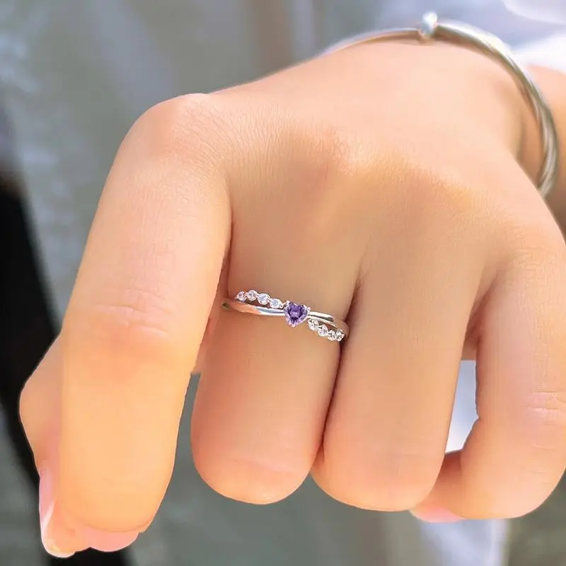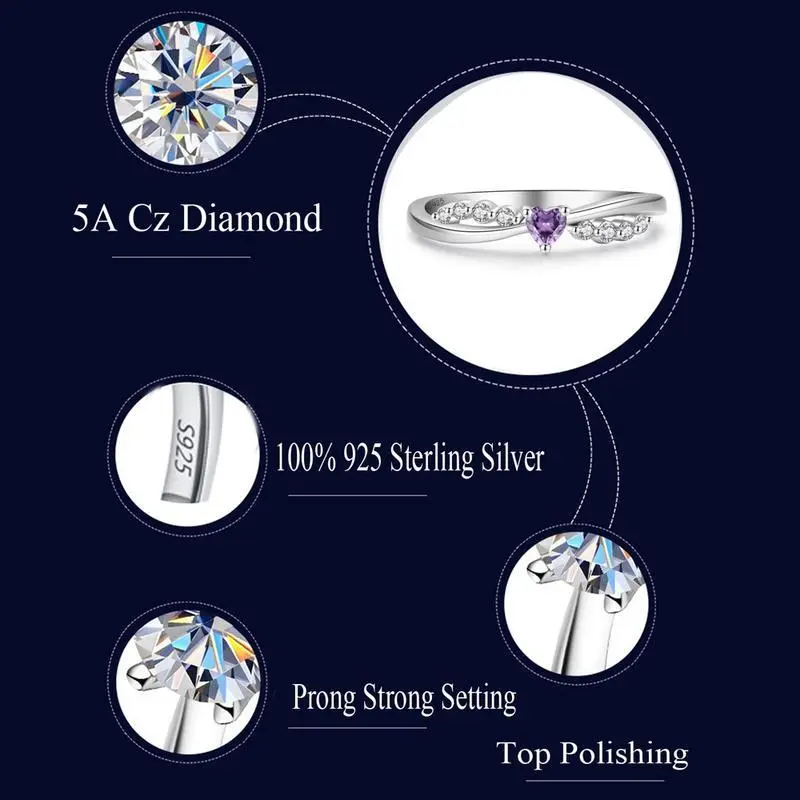 925 pure silver 2.44-2.63g/pcs low-allergy exquisite and fashionable purple synthetic Zirconia inlaid cross heart design female engagement promise ring as a jewelry gift for lovers, daily matching clothing and party accessories