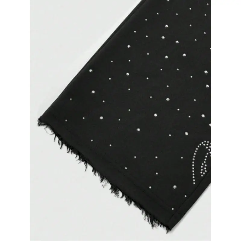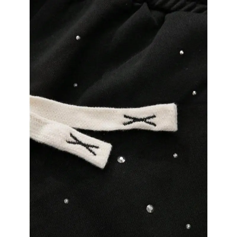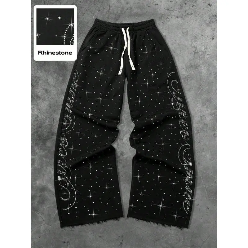 ��Unique Hem Styling��: Featuring raw-edge pant cuffs, offering a distinctive look that sets these sweatpants apart from the rest. ��All-Season Wear��: Crafted with moderate thickness, suitable for any season to keep you comfortable throughout the year. ��Relaxed Fit��: Designed with a loose fit to ensure freedom of movement, making it suitable for various daily activities. ��Durable Fabric��: Made from quality knit fabric, enhancing longevity and resistance to wear, ensuring lasting use. ��Embellished Look��: Adorned with trendy rhinestone accents, adding a touch of flair to your casual outfits without overwhelming.