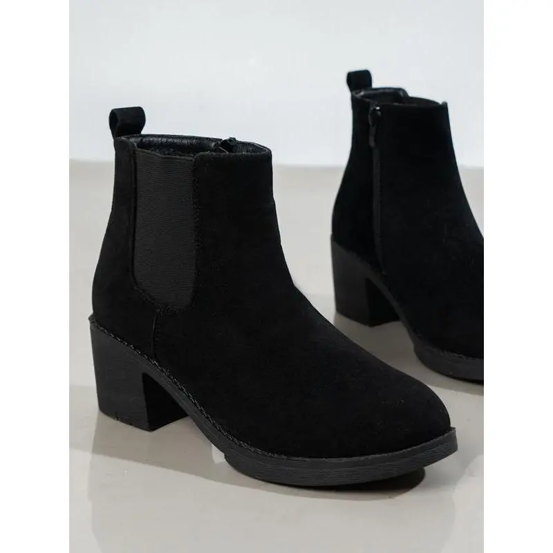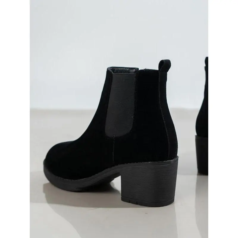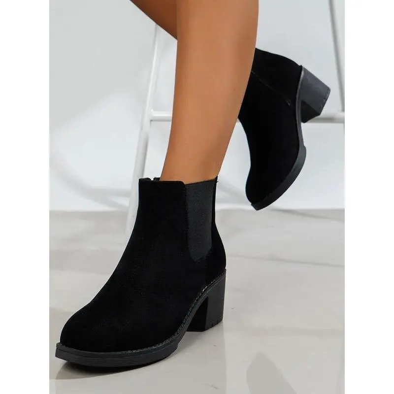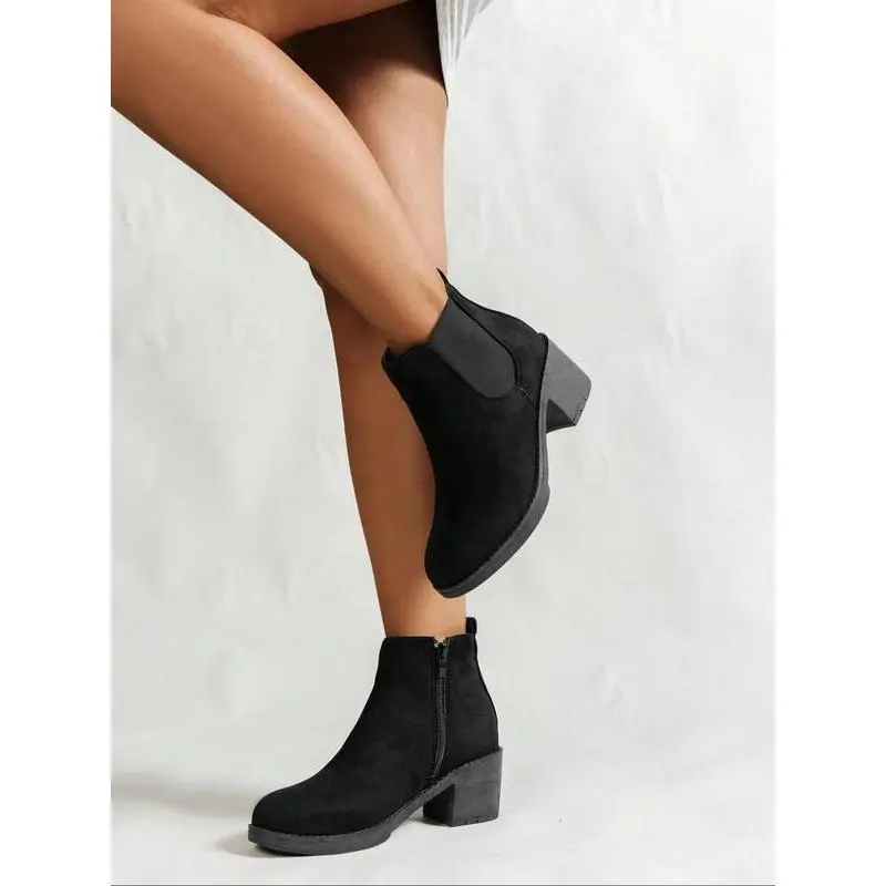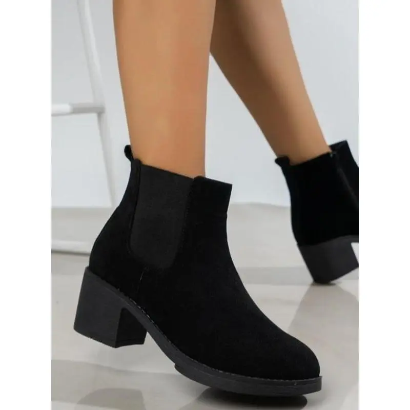 ??Ankle Length??: These ankle boots provide a sleek fit just above the ankle, maintaining a modern silhouette. ??Rubber Sole??: Constructed with a rubber sole, ensuring durability and traction on various surfaces for reliable wear. ??Round Toe??: Featuring a round toe shape, these boots offer ample room for toe movement and comfort. ??Textile Upper??: The upper is made from textile material, providing a soft touch while enhancing flexibility and breathability. ??Thick Heel??: Equipped with a thick heel, these boots add stability and support while you navigate daily activities.