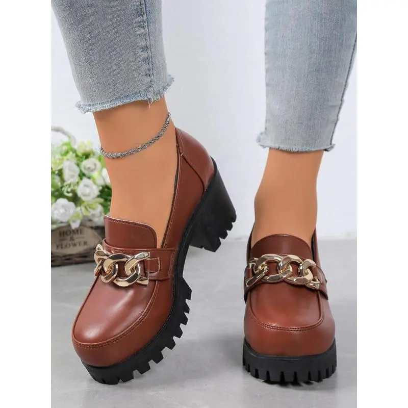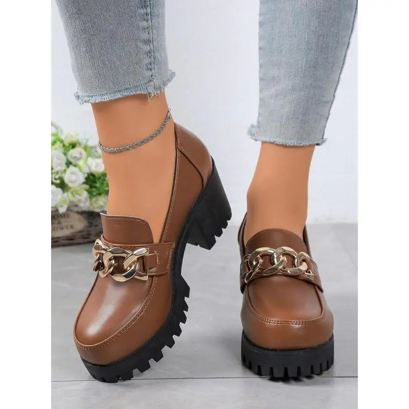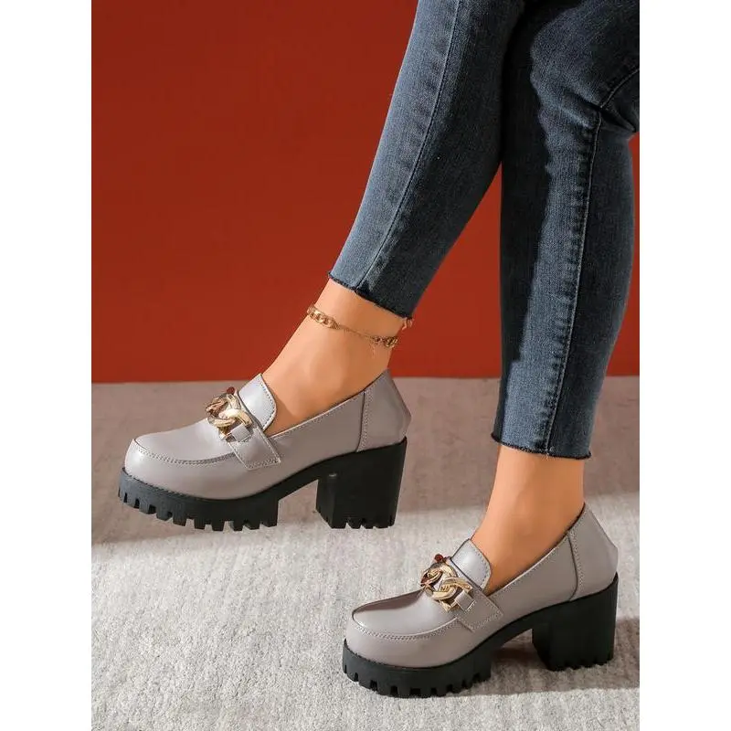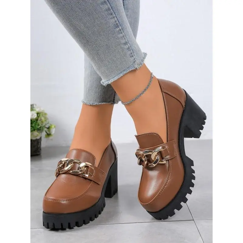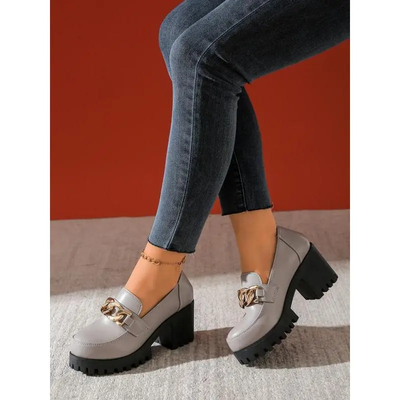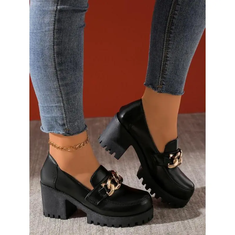 Women's Vintage High Heel Mary Jane Shoes, PU Chain Decor, Round Toe Formal Shoes, Comfortable Insole, Durable Synthetic Lining, Office Shoes