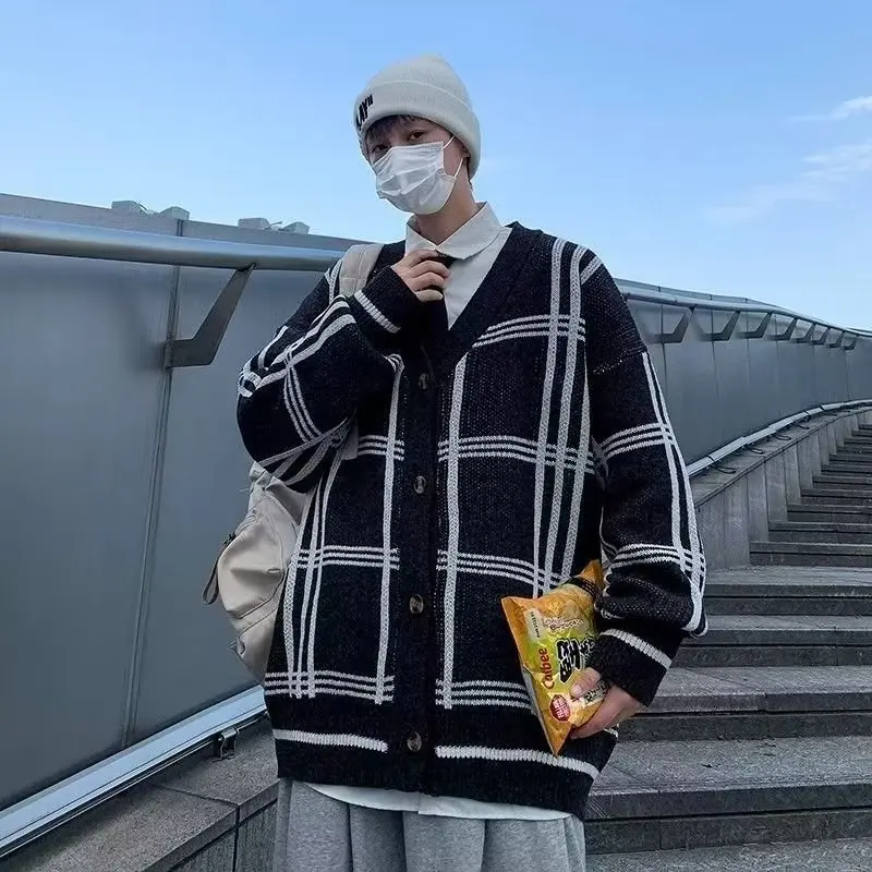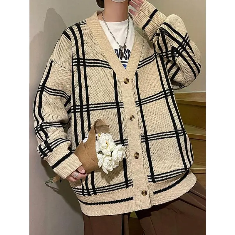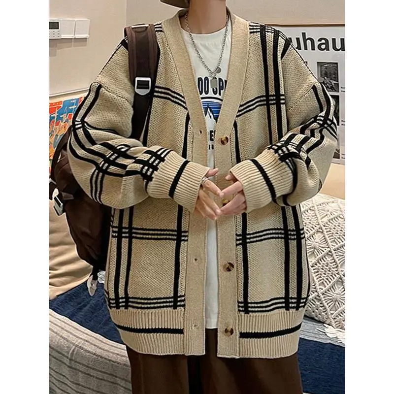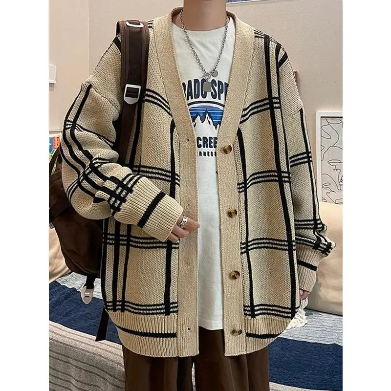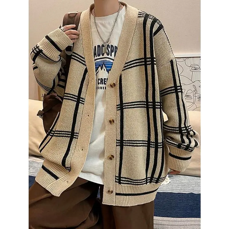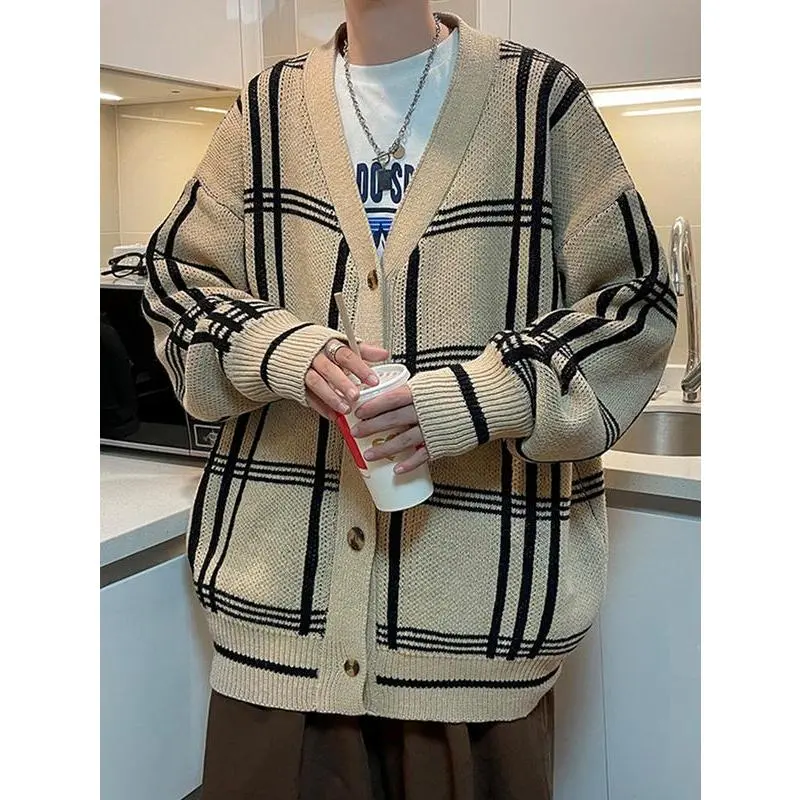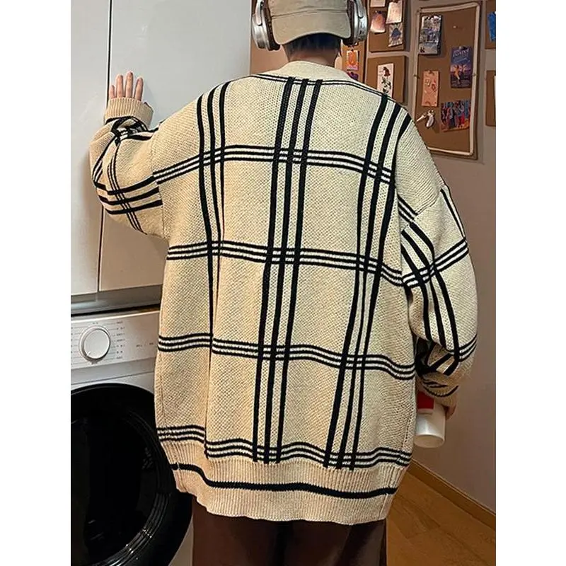 Men's Oversized Plaid Cardigans Sweater Trendy Loose Fit Stylish Sweater Knitwear Menswear Casual