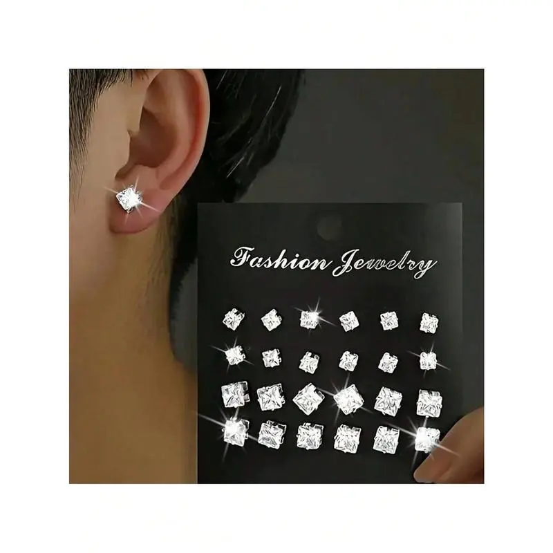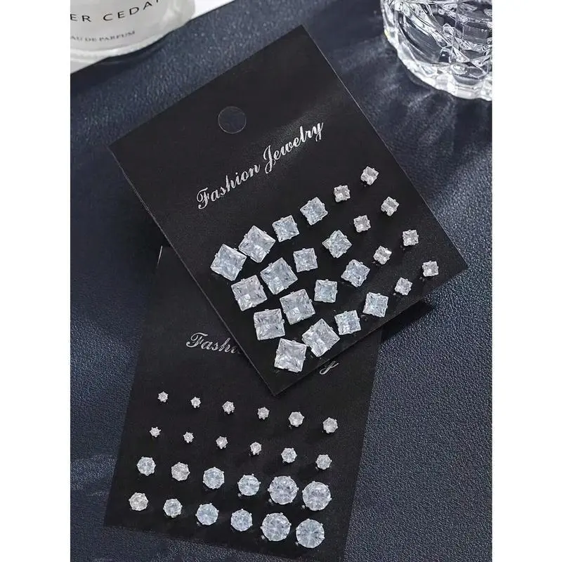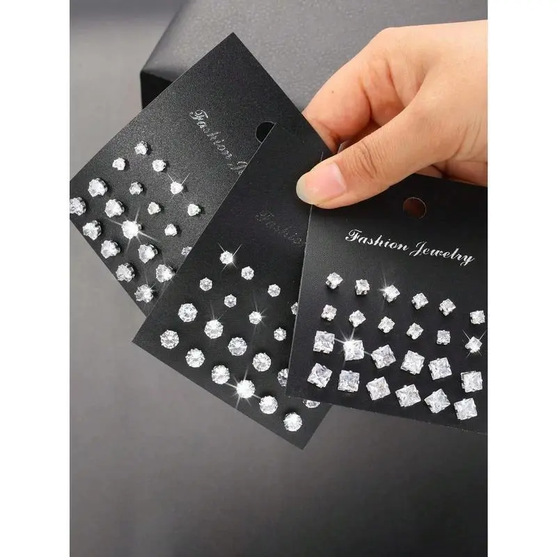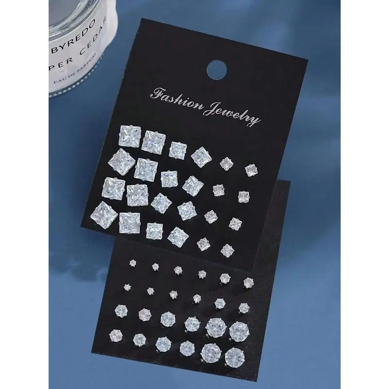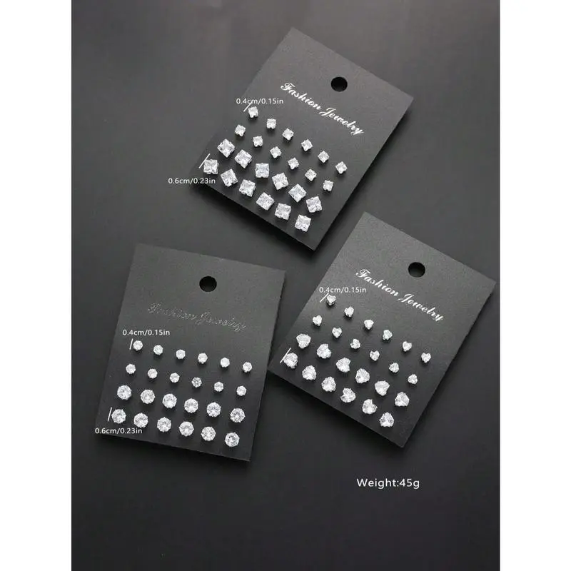 72pcs Geometric Round Heart Square Cubic Zriconia Sparkly Stud Earrings, Simple Punk Hip-Hop Style, Large Set For Parties, Holidays, Dates, Gifts And Daily Wear
