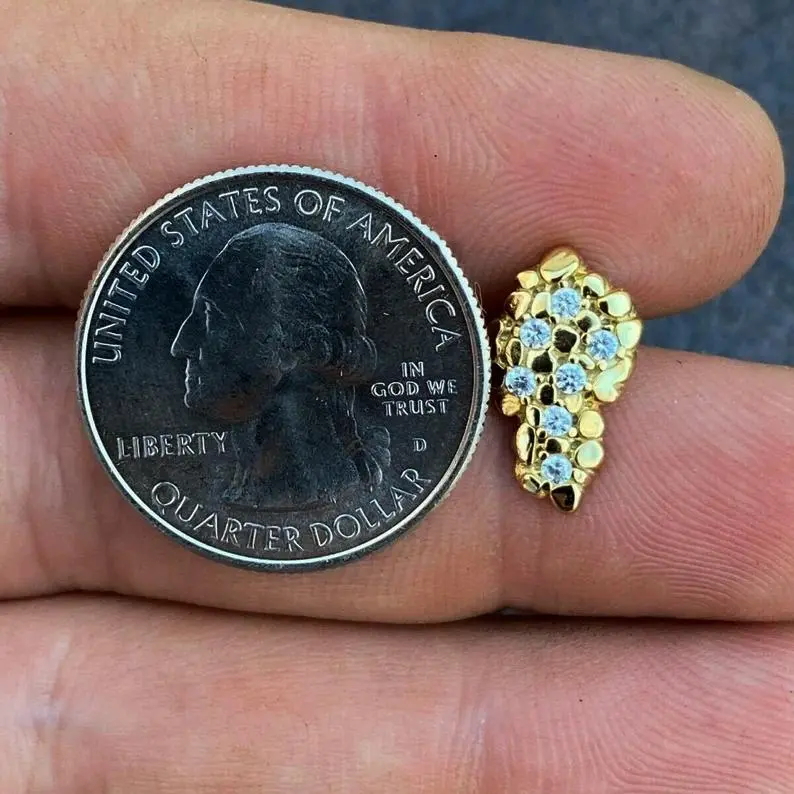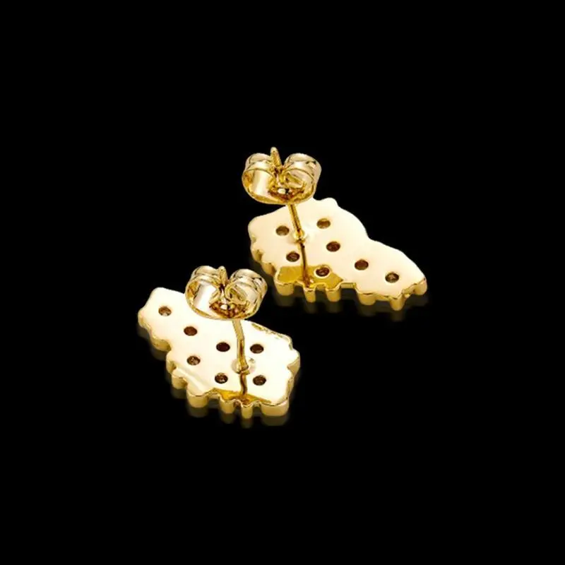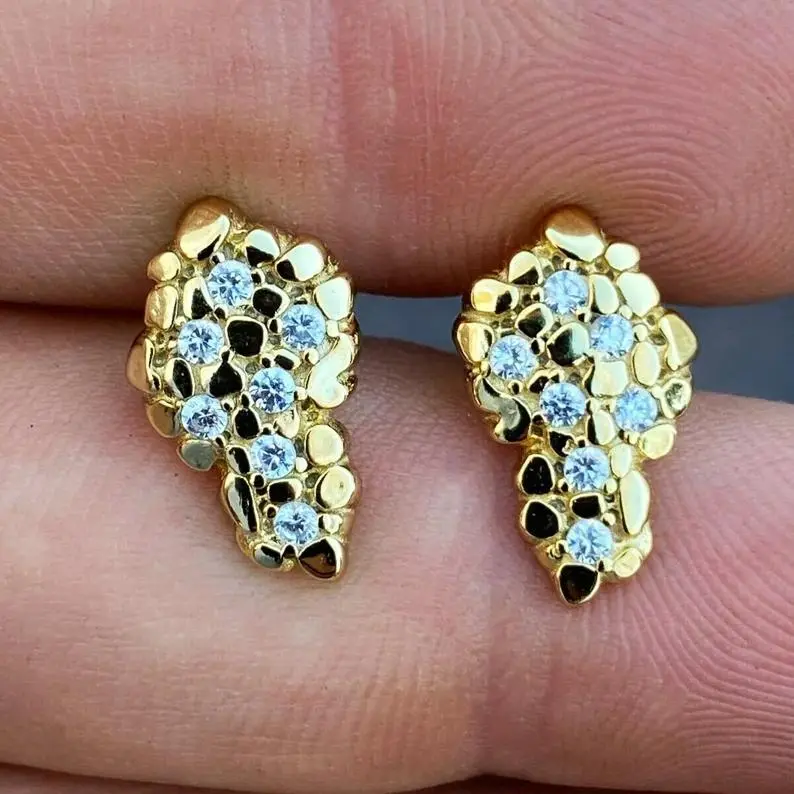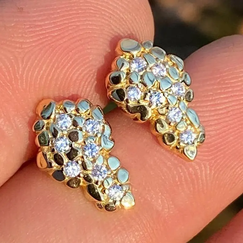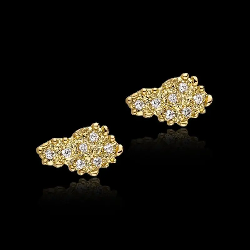 High-End 14K Solid Brass CZ Golden Nugget Iced Earring Earrings Jewelry Stud Fashion Unisex Men Women