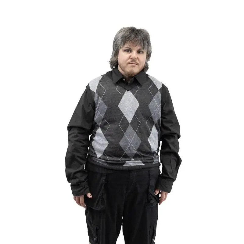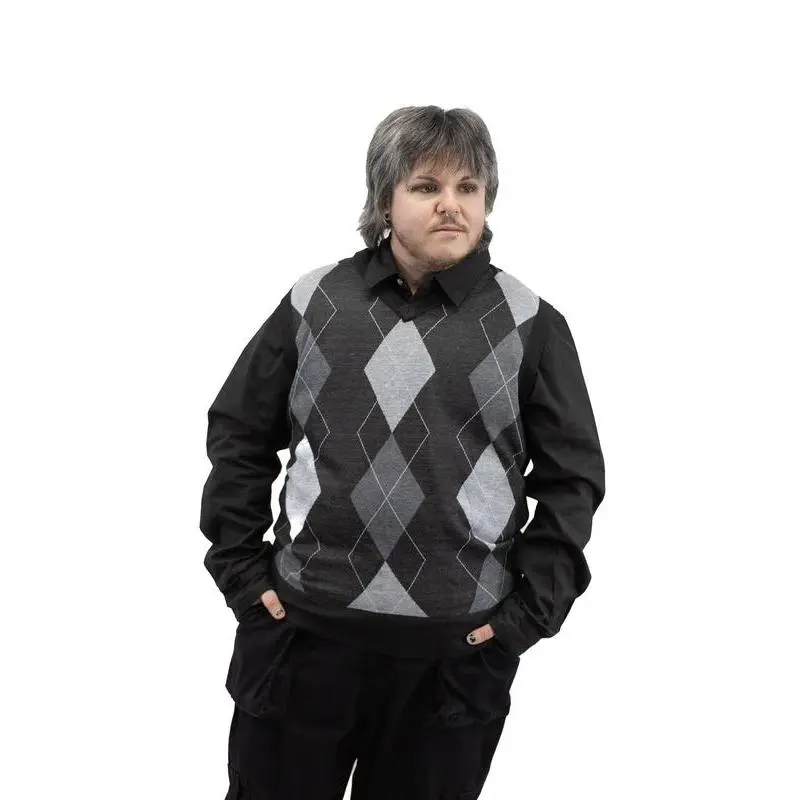 Just like grandpa used to wear... This knit sweater vest features a greyscale diamond argyle print on the front and a solid back. Perfect for distinguished layering on a cold day!