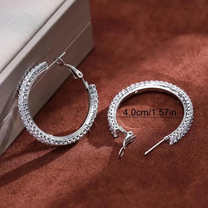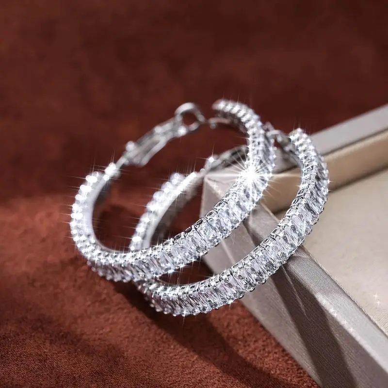 Stunning Full Rectangle Shiny Zirconia Hoop Earrings - Copper Silver Plated Jewelry, Trendy Gift for Women, Decorative Accessories, Hypoallergenic, Nickel-Free, Durable, and Long-Lasting