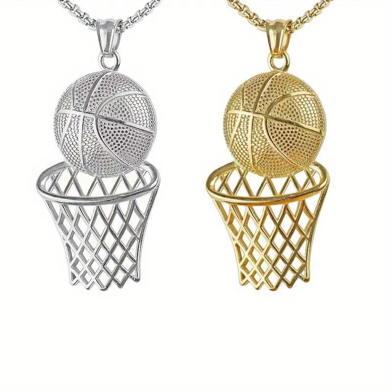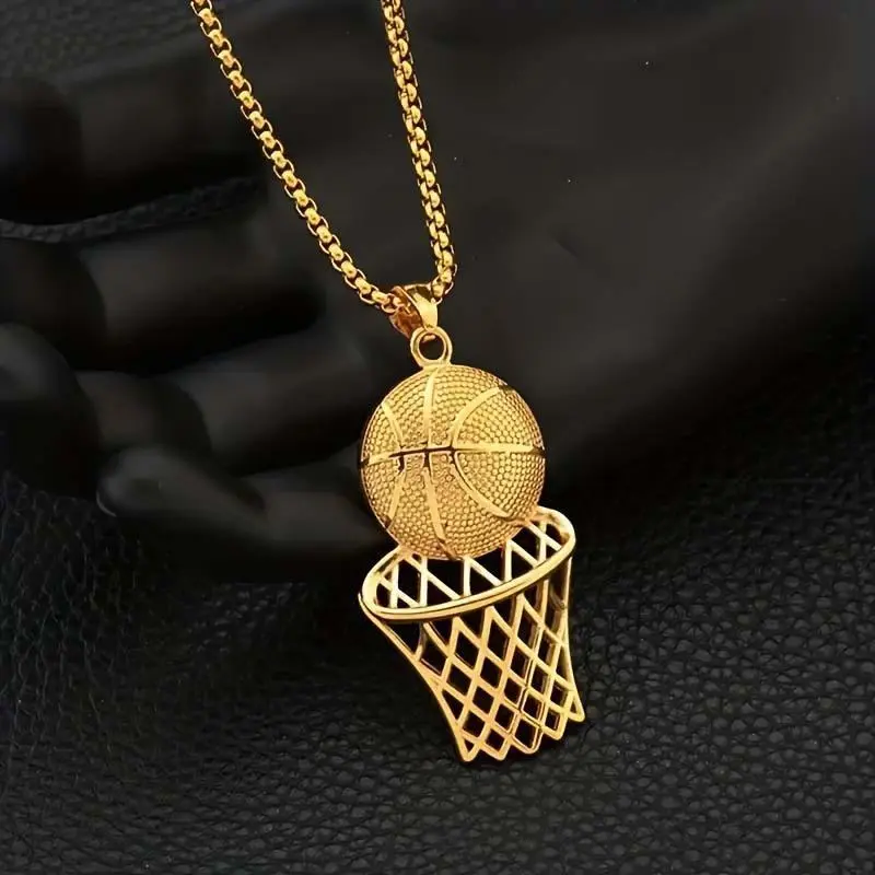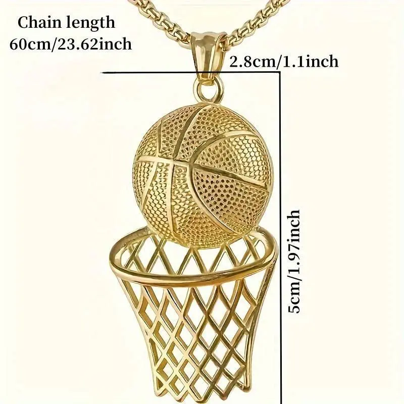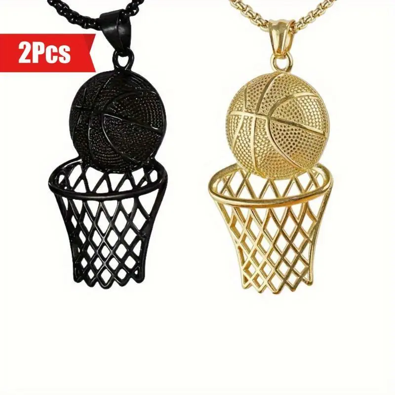 2Pcs Golden Stainless Steel Basketball Necklace for Men, 3D Pendant, Hip Hop Sports Jewelry Gift for Basketball Players & Fans