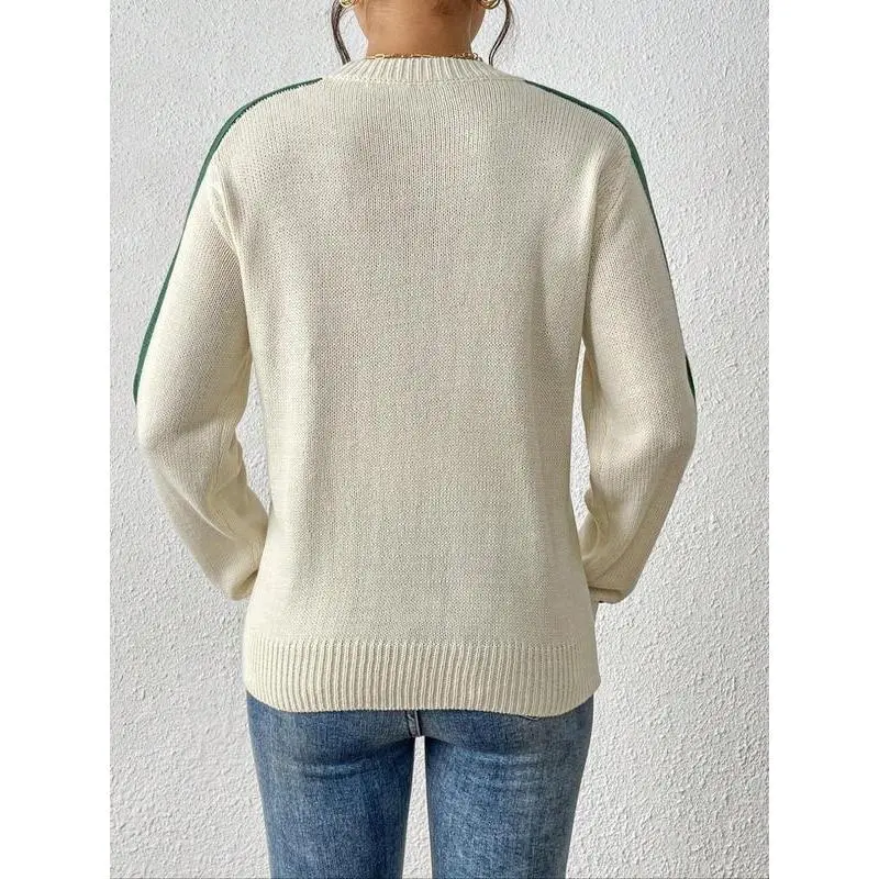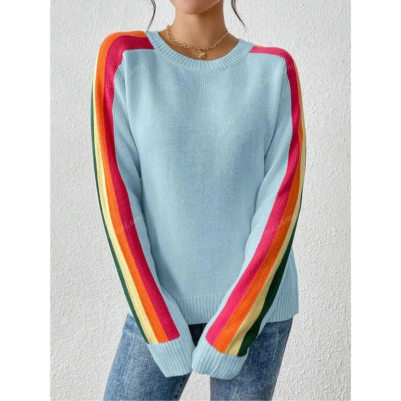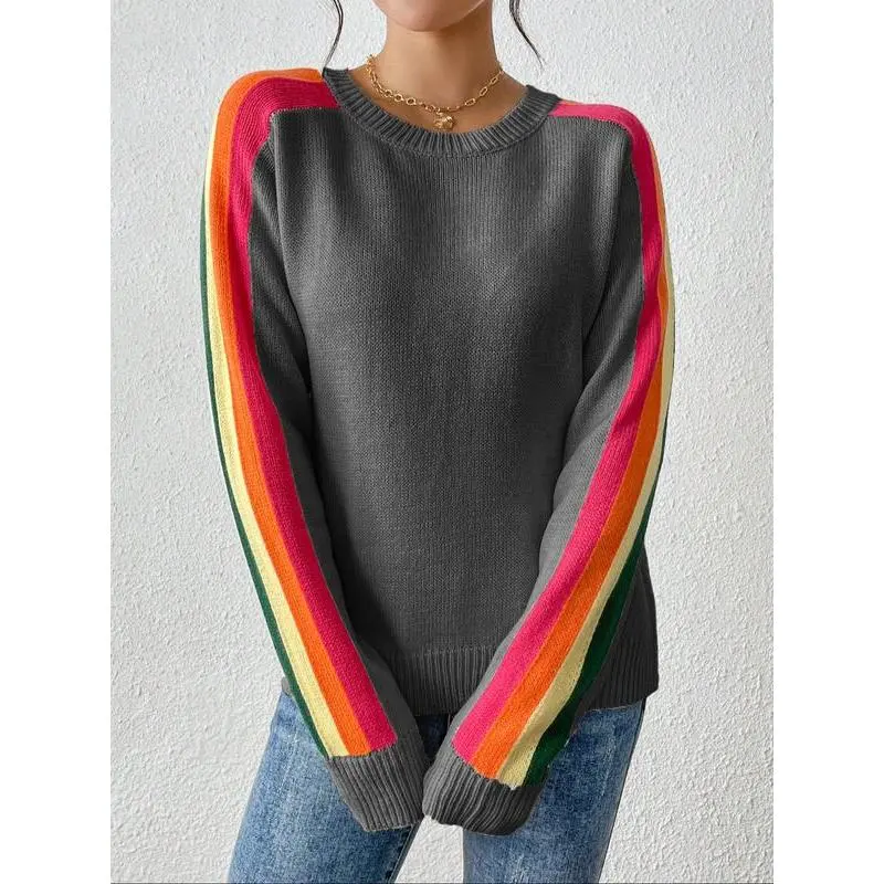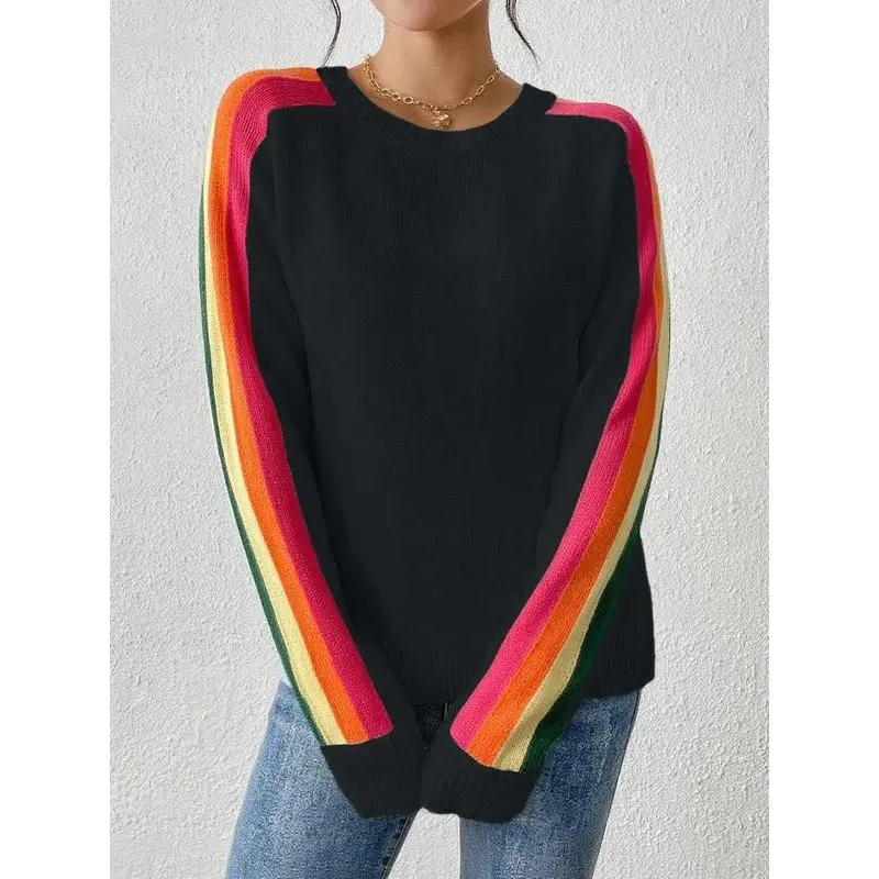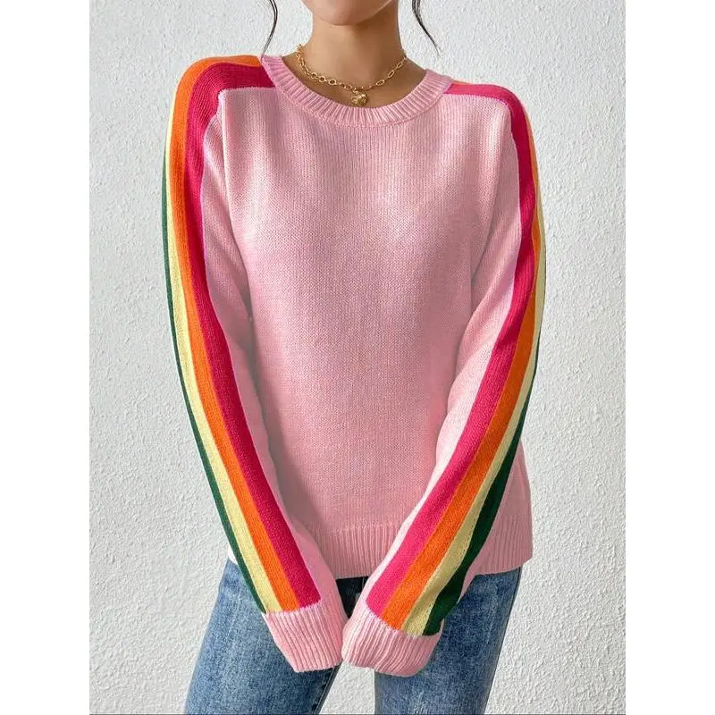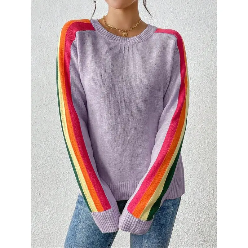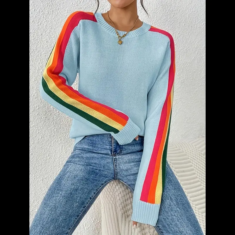 Women's Colorblock Striped Sweater, Casual Long Sleeve Jumper for Spring & Fall, Fashion Women's Knitwear for Daily Wear, Soft Tops