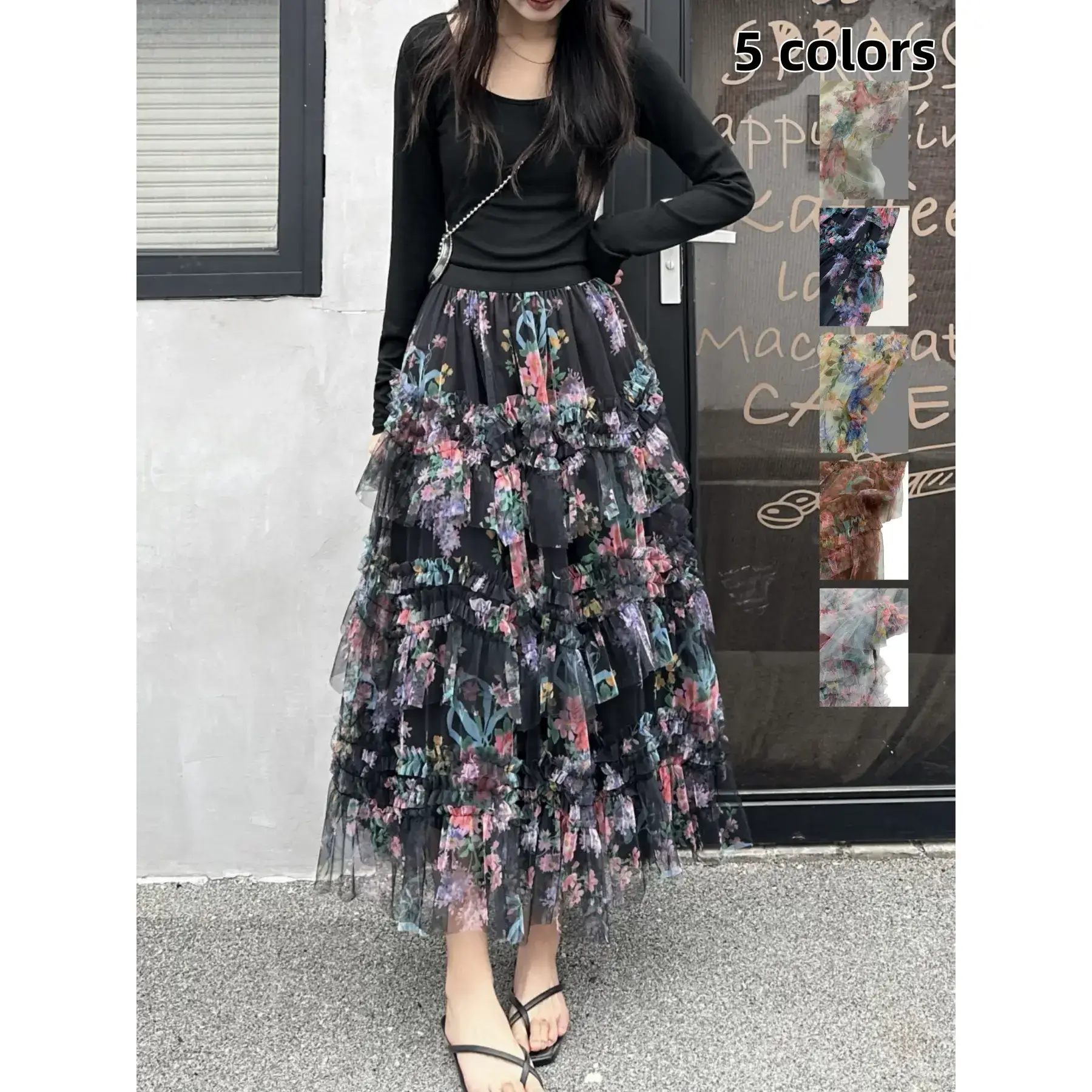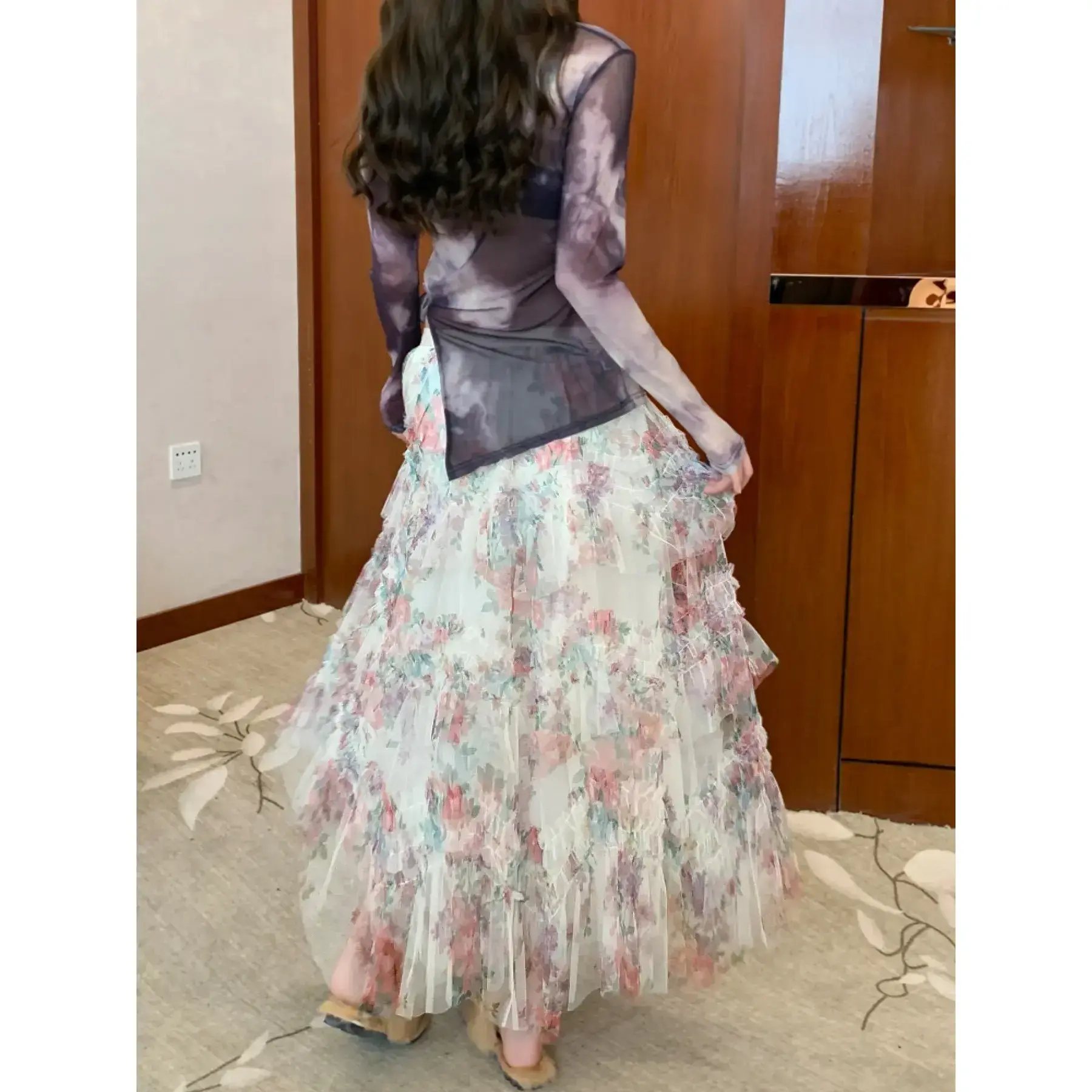 French Elegance Irregular Lace Cake Skirt, Lace Layered Skirt, Bohemian A-Line Long Dress, Valentine's Day Lolita Princess Dress, Casual & Party Wear