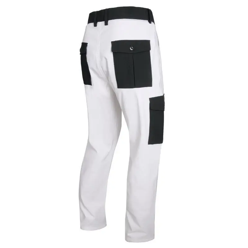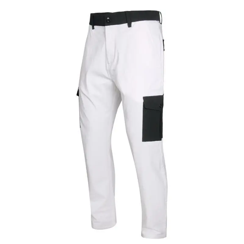 Men's Stretch Cargo Pants - Relaxed Fit White Casual Work Pants with Black Pockets, Durable Viscose Blend Fabric, Machine Washable, All-Season Comfort, Versatile Men's Wear | Utility Trousers | Durable Construction