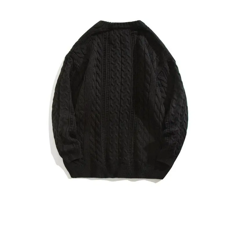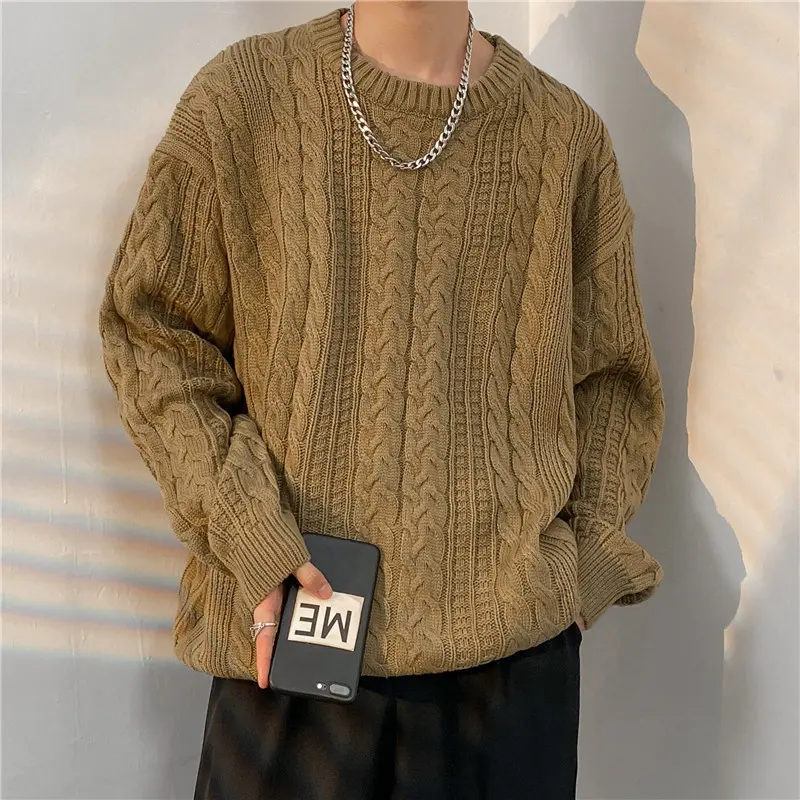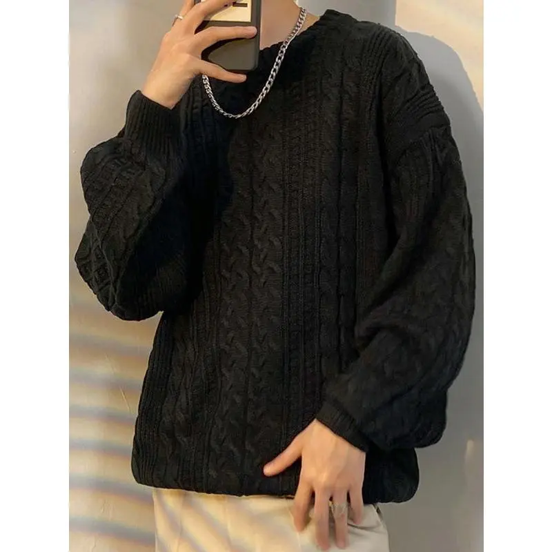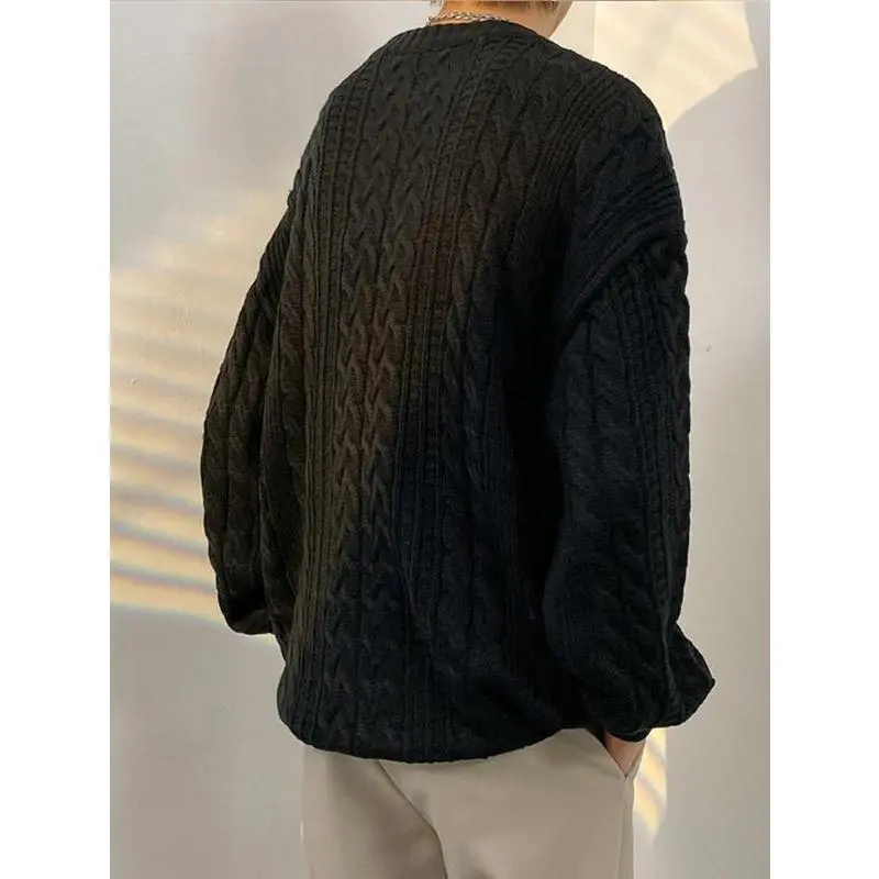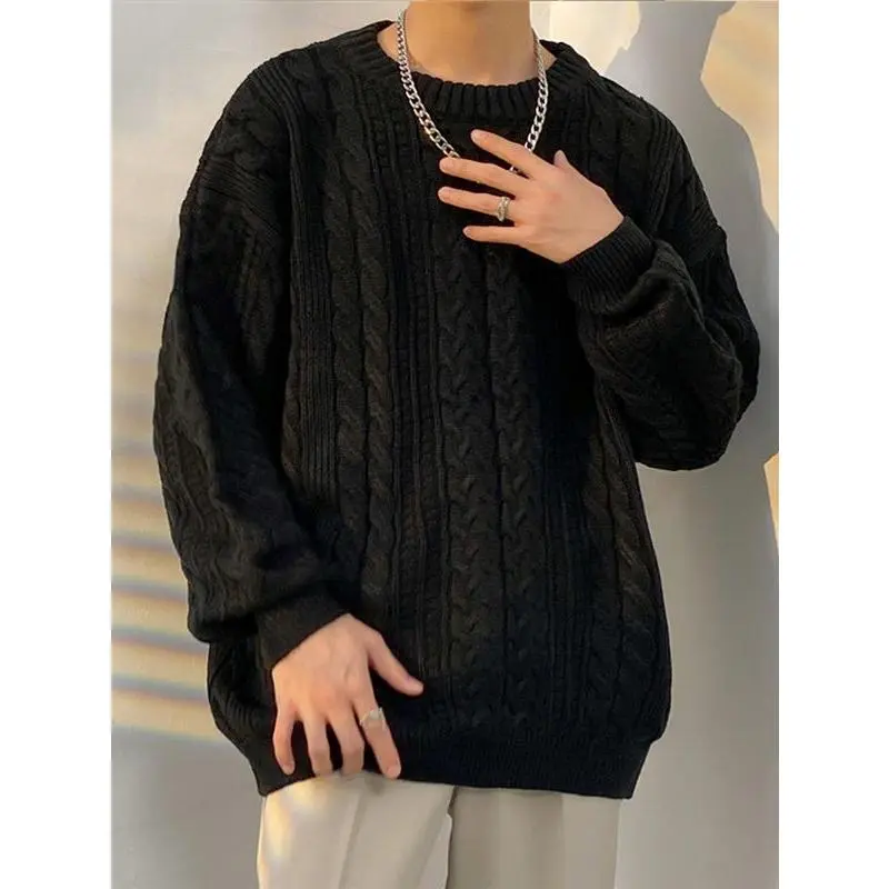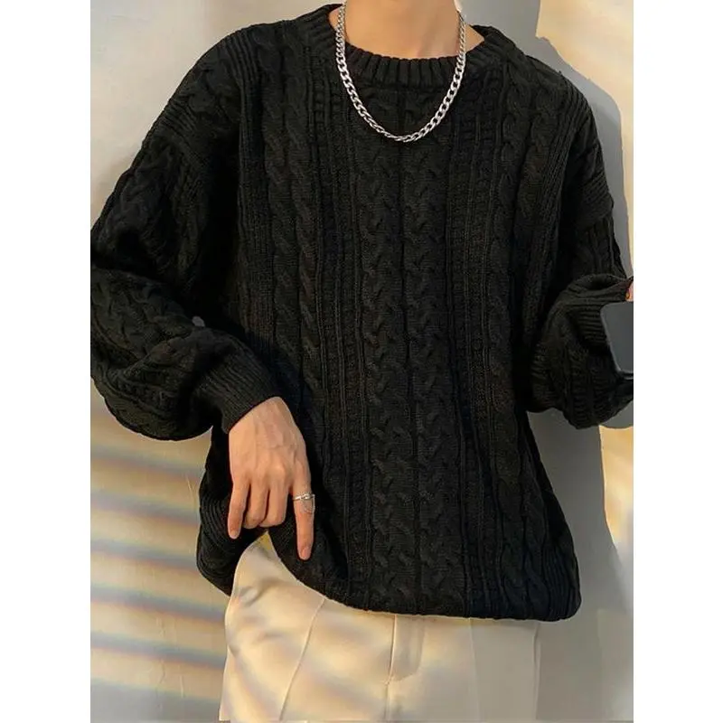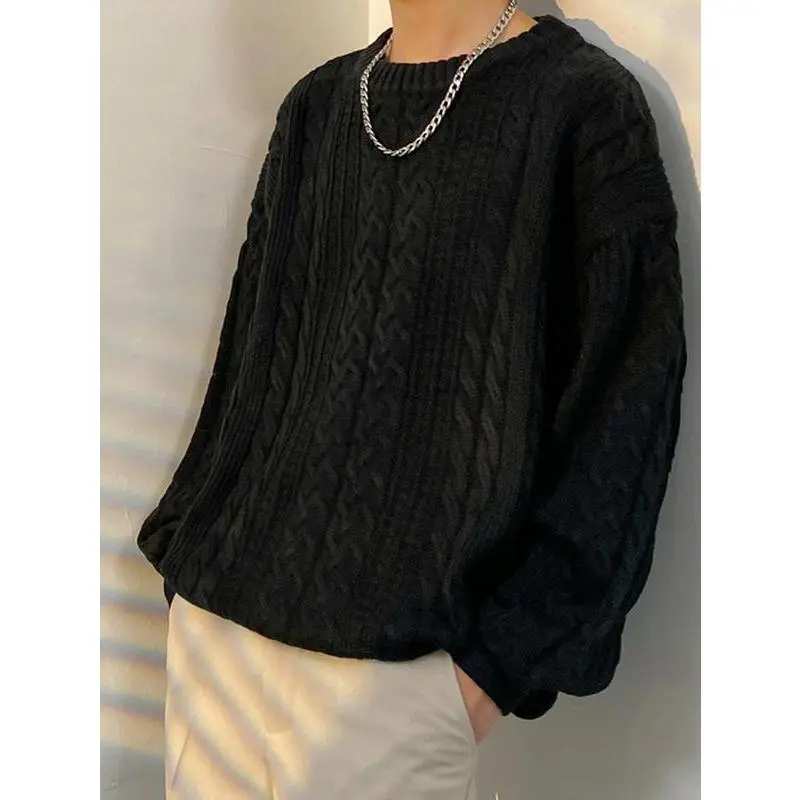 Men's Crewneck Sweater Casual Cable Knit Pullover Sweater Drop Shoulder Solid Knitted Sweaters