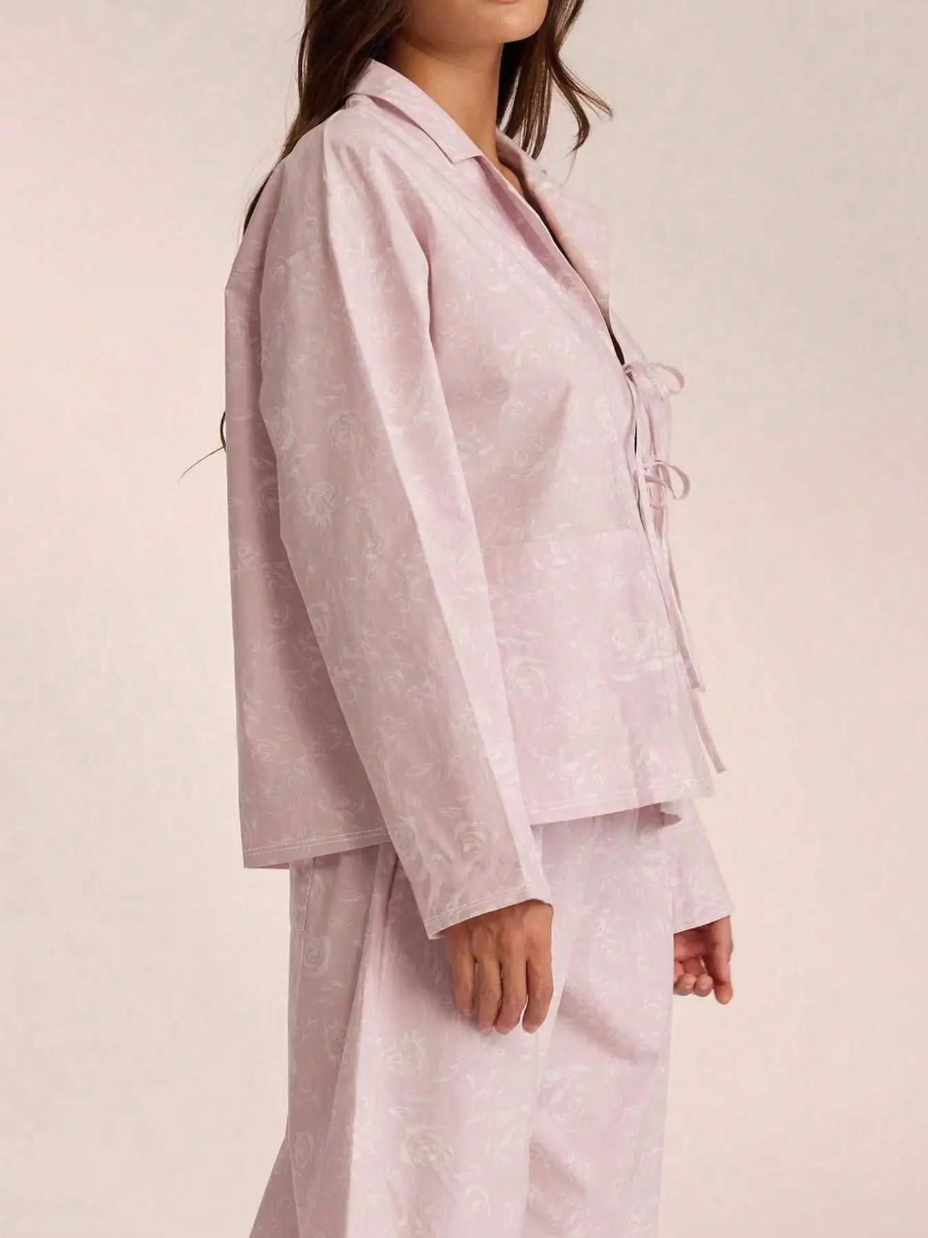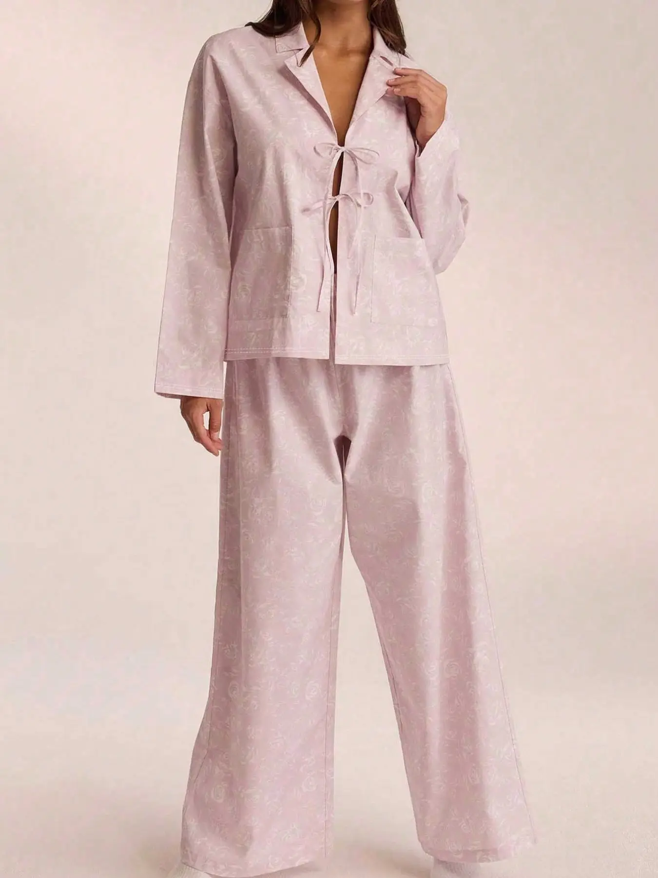 Women's Floral Print Lapel Sleepwear Set, Casual Comfortable Full Body Flower Pattern, Ladies Homeewear Suit for Spring & Fall