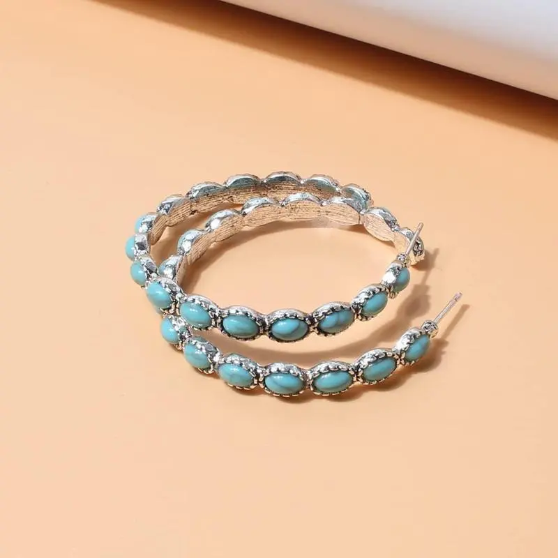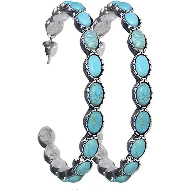 Item type name Country of Origin Enhance Your Charm: Our turquoise earrings symbolize beauty, health, good luck, and healing.They serve as a stylish accessory to elevate your daily look.Exquisite retro Turquoise style make you the most eye-catching queen in the crowd Premium Material: Turquoise jewelry for women are crafted with a vintage silver-colored alloy and genuine turquoise stone, making them skin-friendly.They are safe, durable, and believed to bring you fortune and health Brand Story: Turquoise hoop earrings are designed to raise awareness for clean water access.A portion of our sales goes to charity to bring clean water to communities in need worldwide Meaningful Gifts:Big turquoise earrings is a good ideal gift for best friends, lover, wife, fiancee, mother,Christmas, Birthday,family on Valentine's day, Anniversary, Mother’s Day,friendship memorial special time. The western styles must be attractive for western-style lovers.Smooth creamy rich turquoise color blended for your younger and stylish look Excellent Customer Service : If you have any question about our products,please be feel free to tell us