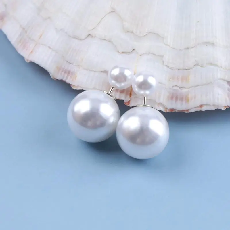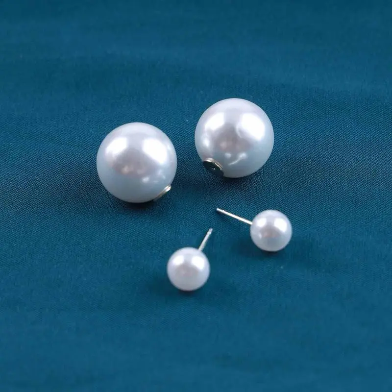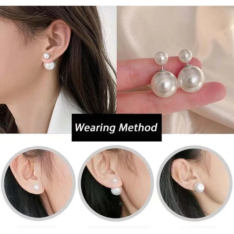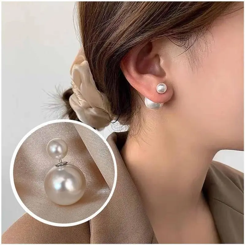 Vintage Pearl Ear Jacket Earrings Large Pearl Earrings Silver Front Back Earrings Double Side Pearl Stud Earrings for Women