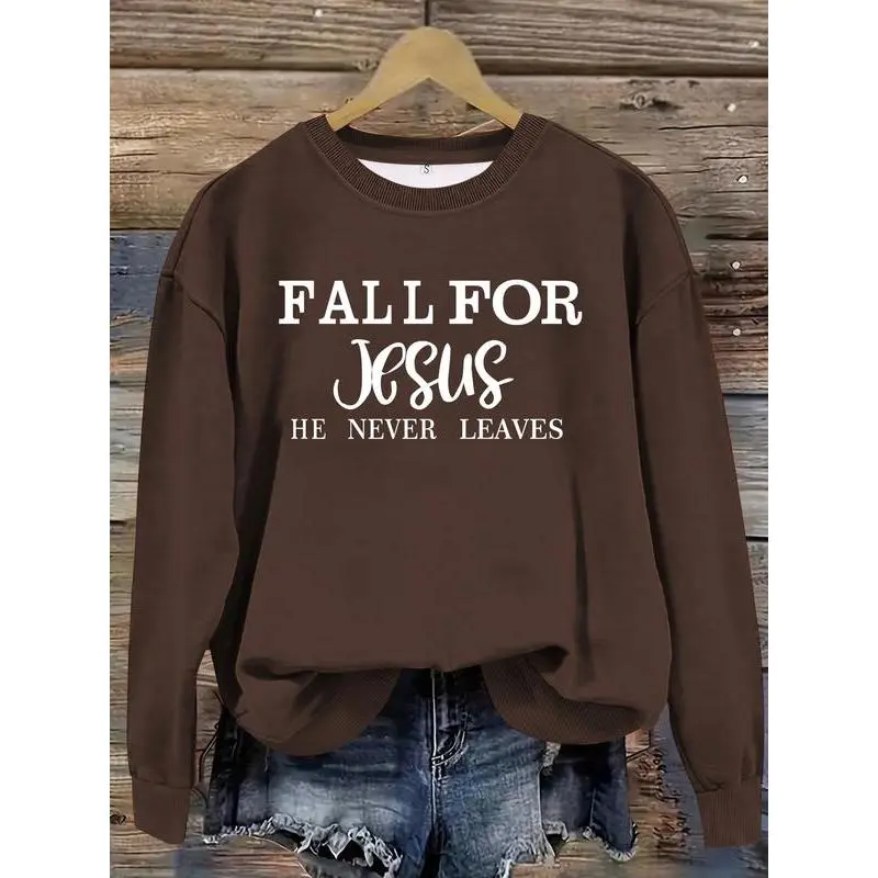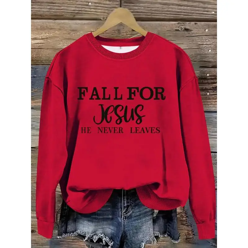 Fall for Jesus Casual Sweatshirt for Women, Fitted Long Sleeve Pullover, Moderate Thickness Knit for Fall & Winter Fashion, Womenswear