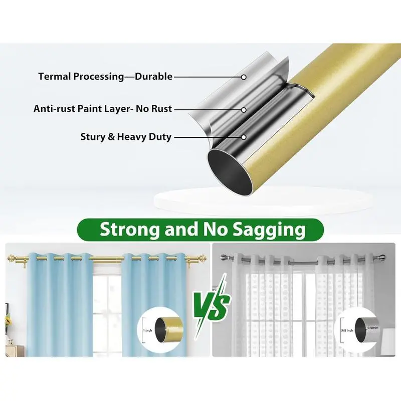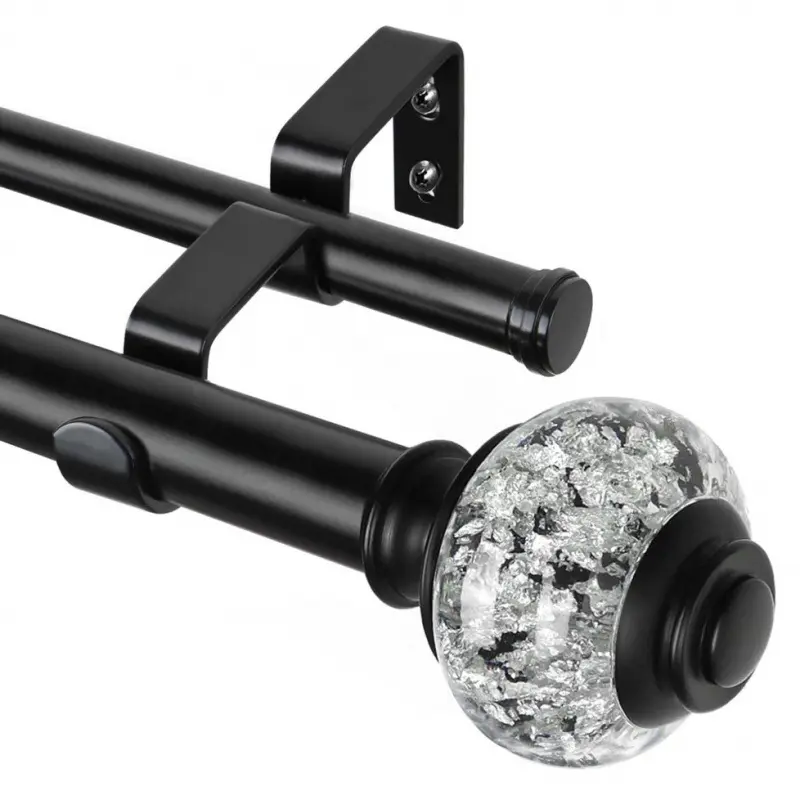 TELESCOPING DOUBLE CURTAIN ROD: double curtain rods can extend from 36 to 72 Inches, fit a variety of sized windows and support light to heavy weight curtains. Ideal for kitchen, bedroom, living room, room, office or any other places STURDY & ROBUST: window curtain rods with 1 Inch diameter front rod and 6/8 Inch on rod, 0.6 mm rod thickness, can easily hold up to 30 pounds, for tab top curtains, top curtains, rod pocket curtains and others BLING APPEARANCE: It is very elegant with its bling finial, sprinkled with foil, which is a complement and enhancement to the lovely curtains they suport MORE OPTIONS: Explore the extensive selection of Double curtain rods, designed to cater to your diverse requirements. Choose from a range of finishes including , , and black, tailored to complement various architectural styles EASY TO INSTALL: drapery rod set comes ready to hang with all the mounting hardware, including adjustable brackets, screws, drywall anchors and instructions. You can easily mount double rod in just a few steps and minutes