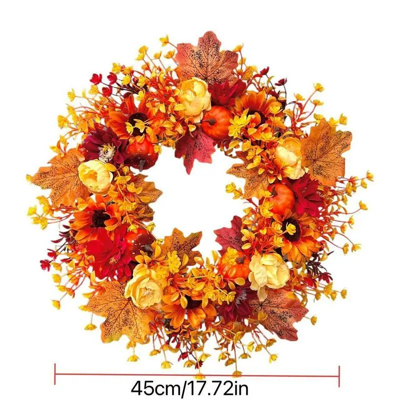Autumn Wreath Hanging Decoration, Harvest Festival Maple Leaf Pumpkin Wreath Door Hanger, Thanksgiving Halloween Decorations