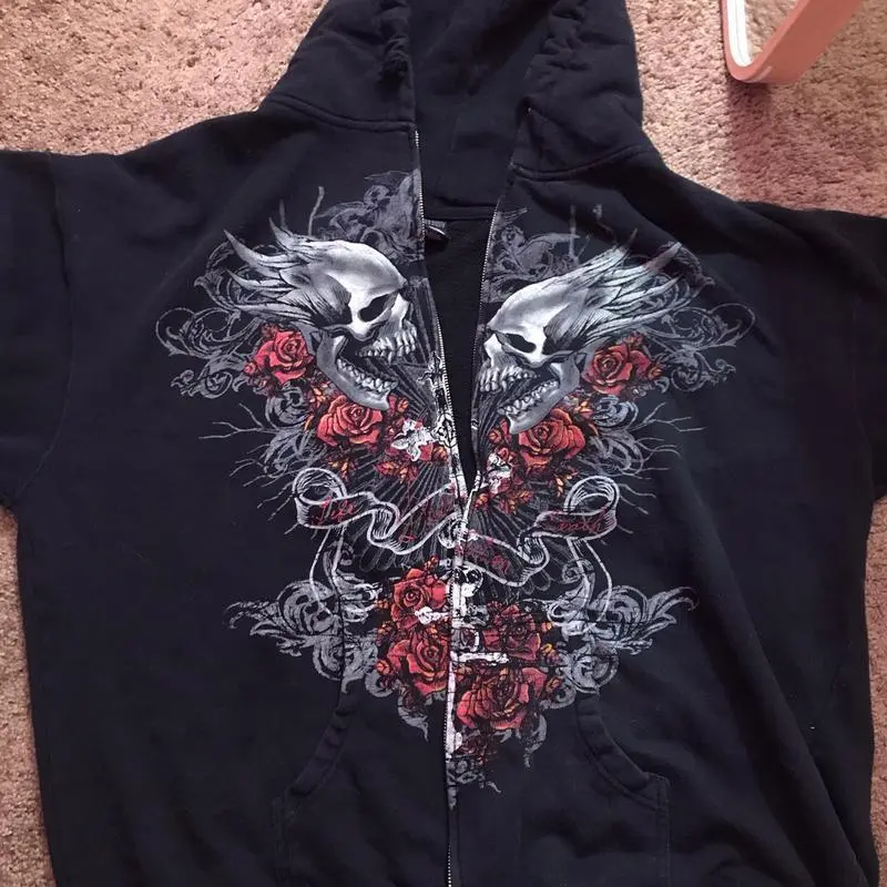 Women Zip Up Hoodie Y2k Vintage Graphic Oversized Hooded Sweatshirt Jacket Pullover Coats Harajuku Streetwear