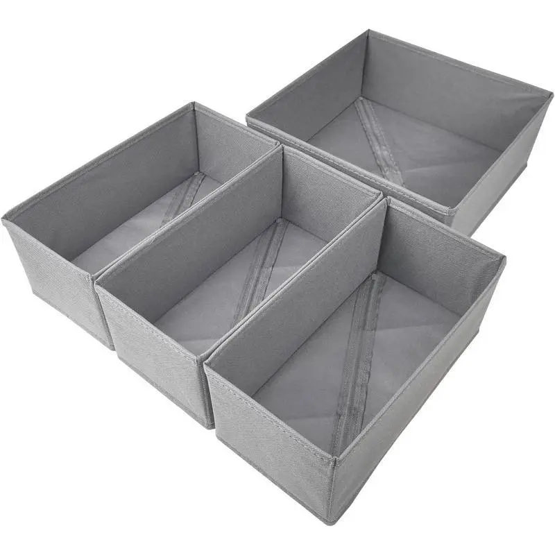 Drawer Organizer Clothes Set of 4 Gray, Dresser Drawer Divider for Socks and Underwear, Wardrobe Storage Bin for Bra Panties Stockings Pants Tshirt