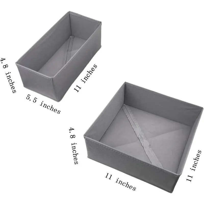 VERSATILE STORAGE: clothes drawer organizer set for storing socks, underwear, panties, and stockings in dresser drawers with customizable compartments SET CONTENTS: Includes 3 medium-sized compartments and 1 large compartment for flexible drawer organization options MEDIUM COMPARTMENTS: Each measures 11 inches long, 5.5 inches wide, and 4.8 inches high as efficient drawer storage bin can fit a lot of rolled up socks and underwear as well as other undergarments LARGE COMPARTMENT: Spacious unit measuring 11 inches long, 11 inches wide, and 4.8 inches high for bulkier items such as bra shirts tshirts pants jeans towels, as well as teenager and 's clothes PRACTICAL DESIGN: Helps maintain neat, dresser drawer dividers organized drawers while making it easy to find, divide and access clothing items